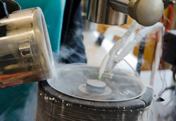 -133 Grad Celsius“, sagt Lörting. Da das Wasser in einem kleinen Zylinder unter