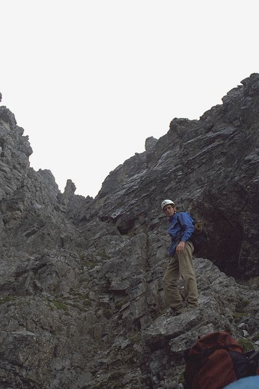 Die Rinne hinauf ist zwar keine Genußkletterei im engeren Sinn, aber auch kein Problem und so stehen wir bald am