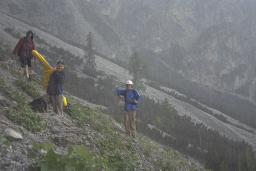 Kletterhelme kennen. Als wir schließlich den Wald erreichen hört der Hagel zwar auf, dafür schlägt