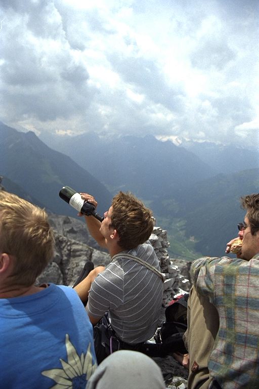 aber eine ausgiebige Gipfelrast muß einfach sein. So kommt es, daß uns schließlich die ersten Regentropfen