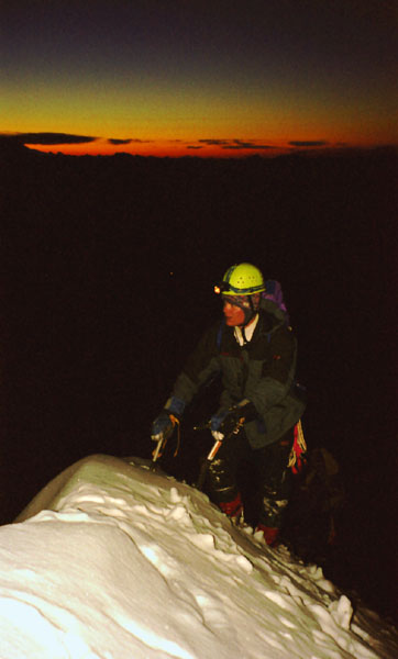 schmalen Gratschneide. Doch bald geht die Sonne auf.