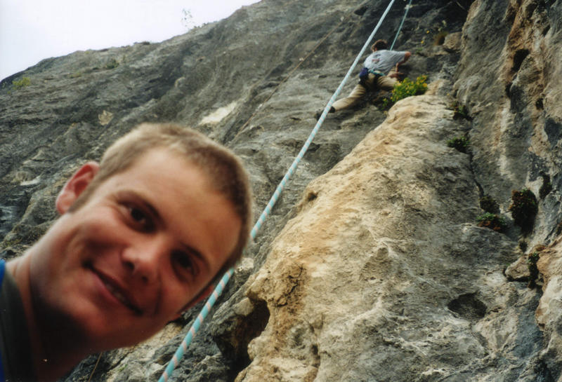 Mai 2001 - Klettergarten - Helmut "sichert"?
