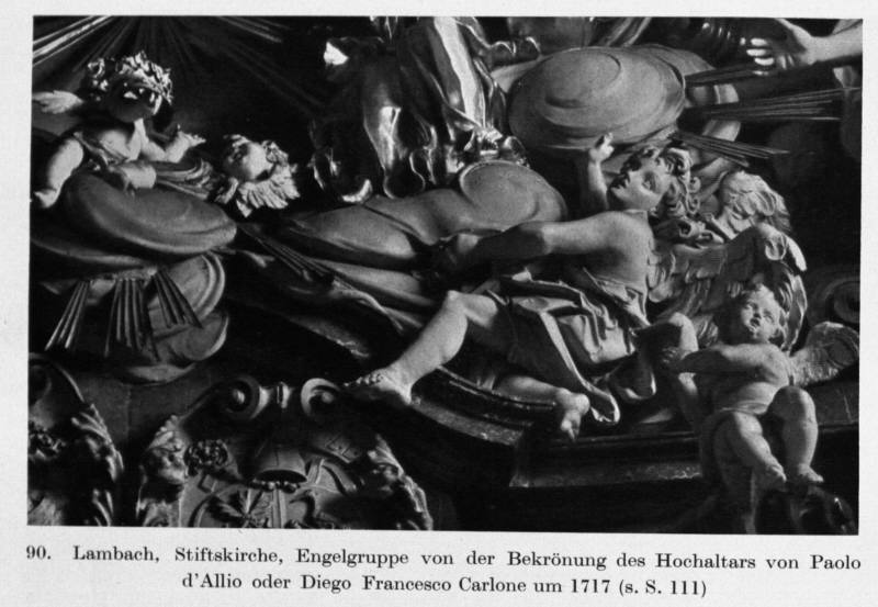 Franz Engel (Die Stuckarbeiten Giovanni Battista Carlones, 1966, S 150/151) spricht von der Carlone-Allio-Werkstatt, in der