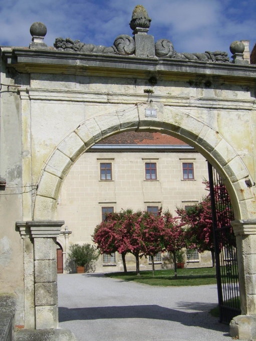 auf und wurde noch vor 1657 (Tod v. Graf Puchheim) erweitert und ein Festsaaltrakt errichtet, der vermutlich auf Filiberto Luchese zurückgeht. Der Vergleich mit gesicherten Werken Lucheses verstärke diese These. Im Rahmen der frühbarocken Ausgestaltung des Hofhauses wurde u.a. auch das Hofportal des Westtraktes, vermutlich von italienischen Stuckateuren aus der Luchese-Werkstatt, mit aufwendigen Stuckarbeiten ausgestattet.