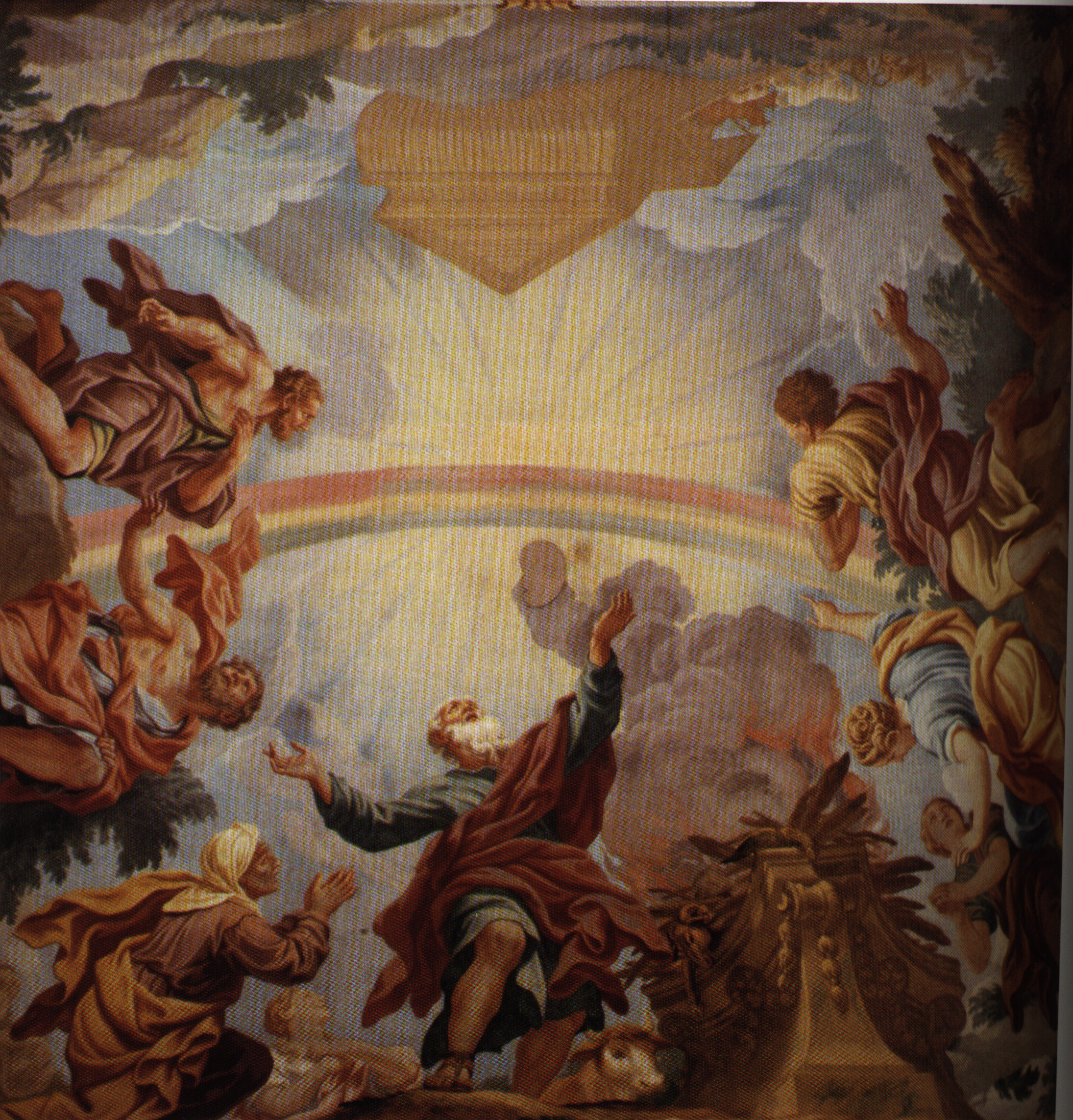 Die Darstellung „Das Opfer Noahs“ ist sehr lebhaft und originell, mit grandiosen Figuren aber auch einer lyrischen Landschaft und in der Ferne einer zierlichen Prozession von Tieren, die nach der Sintflut aus der Arche kommen. Alles wird vereint durch einen großen bunten Regenbogen.