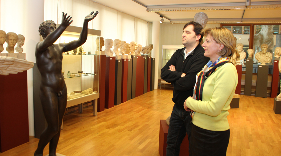 In einem anschließenden Rundgang durch das Haus stand auch eine Führung im Archäologischen Universitätsmuseum auf dem Programm, welches als zentrales Element der archäologischen Wissensvermittlung für mehr als 4.000 Besucherinnen und Besucher im Jahr dient.