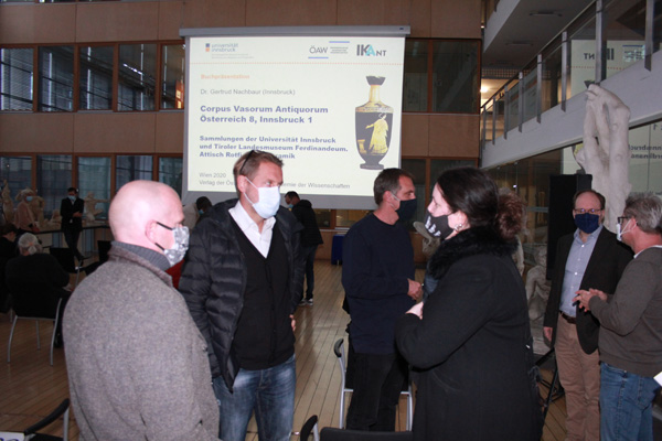 Die Buchpräsentation selbst fand im Rahmen der 13. Tagung des Österreichischen „Corpus Vasorum Antiquorum“-Arbeitskreises statt, die heuer in Kooperation des Archäologischen Universitätsmuseums Innsbruck sowie der Leiterin des Arbeitskreises Dr. Claudia Lang-Auinger vom Institut für Kulturgeschichte der Antike der Österreichischen Akademie der Wissenschaften im ATRIUM-Zentrum für Alte Kulturen abgehalten wurden. Fachvertreterinnen und Fachvertreter, die zu antiken Vasen forschen, fanden sich aus Österreich, Deutschland, Tschechien und Ungarn ein um den ganzen Tag über Aspekte antiker Keramik zu diskutieren sowie in öffentlichen Vorträgen zu präsentieren