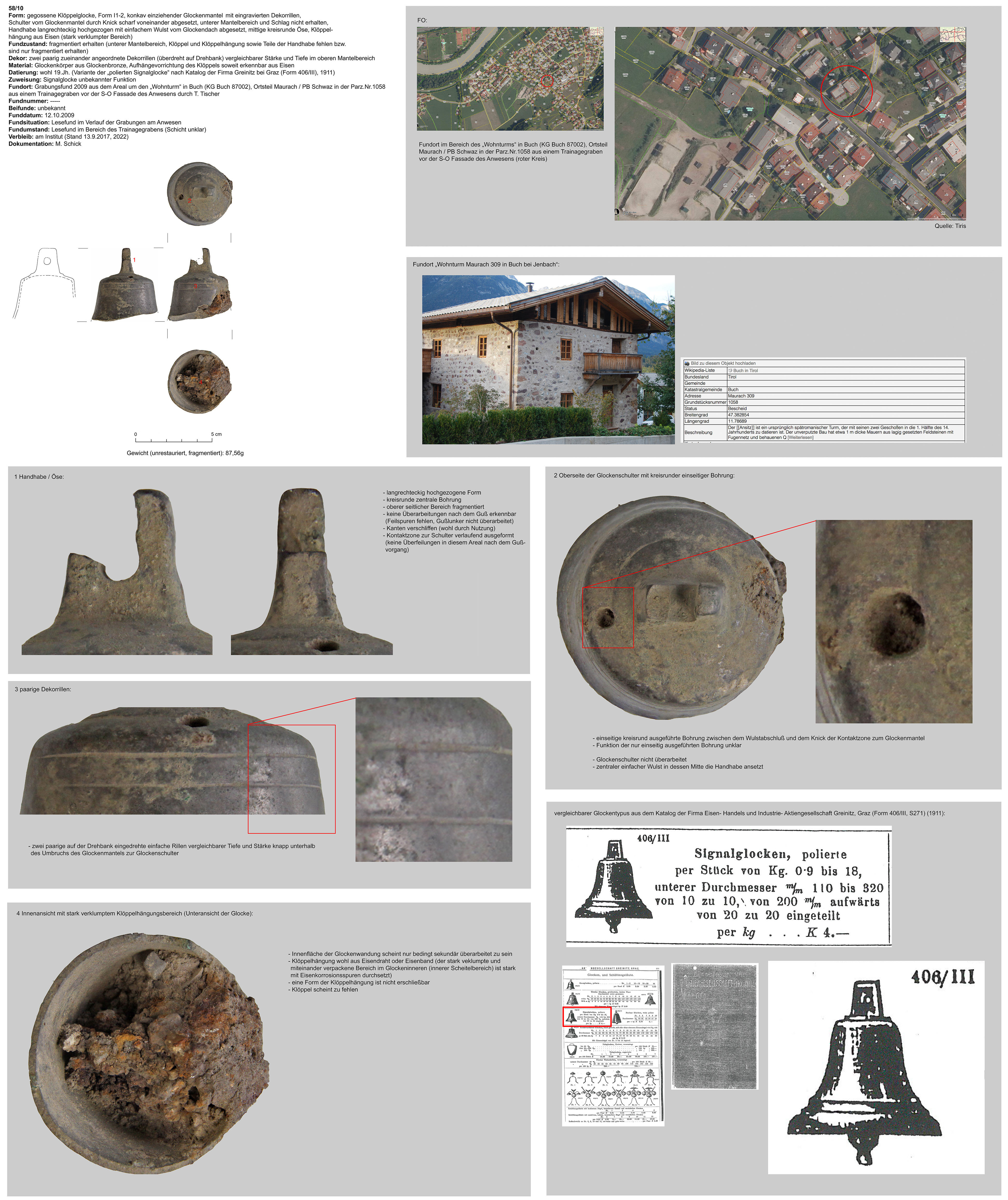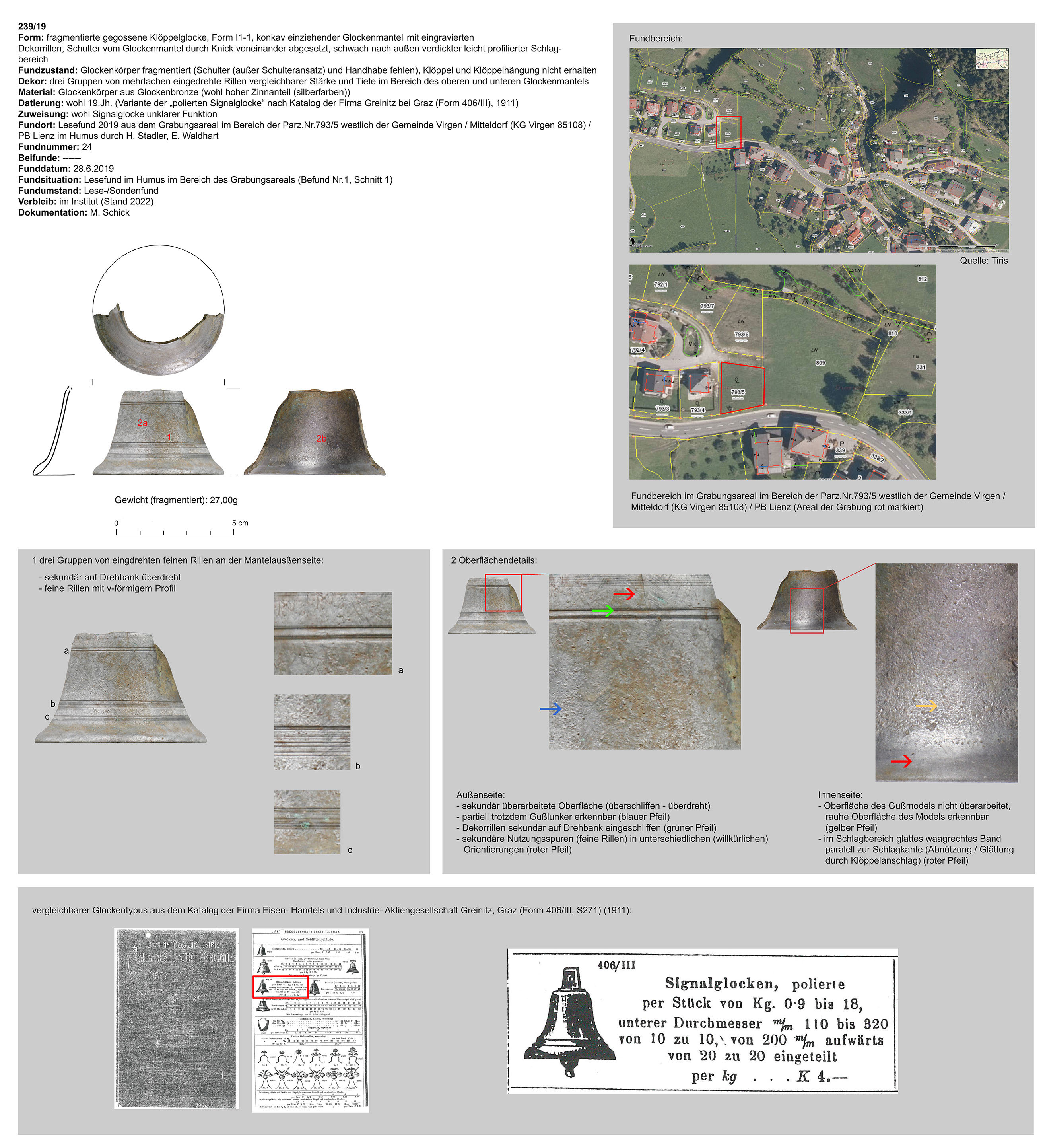 | 681/17 | Typ 3a/2 | Watsch, KG Strass (87009), PB Schwaz, Parz.978/1, Humusfund (Specht) | Mittellage (Lesefund) | mitgegossene Dekorrillen im Schlagbereich, keine Marke, kein Dekor?? | |