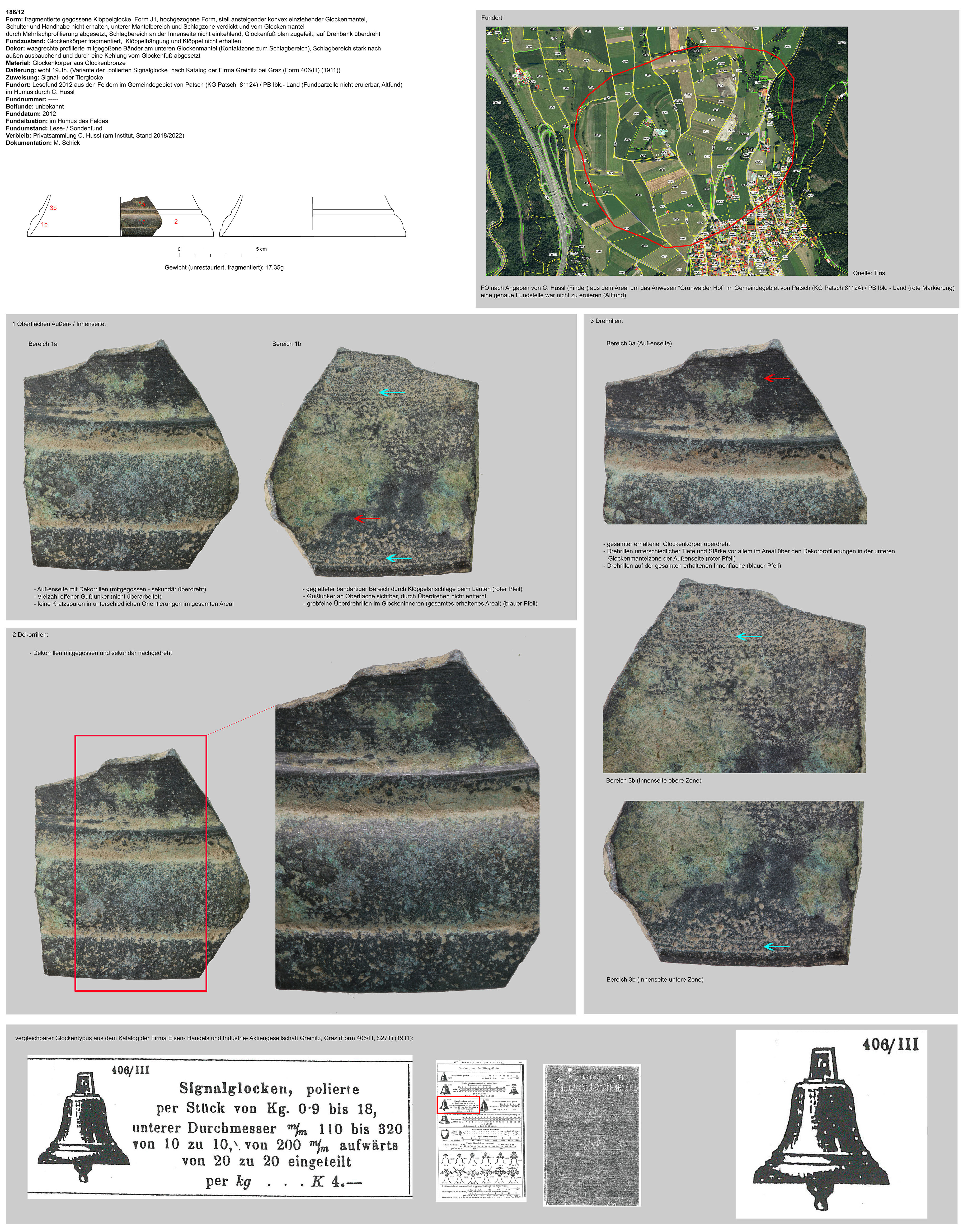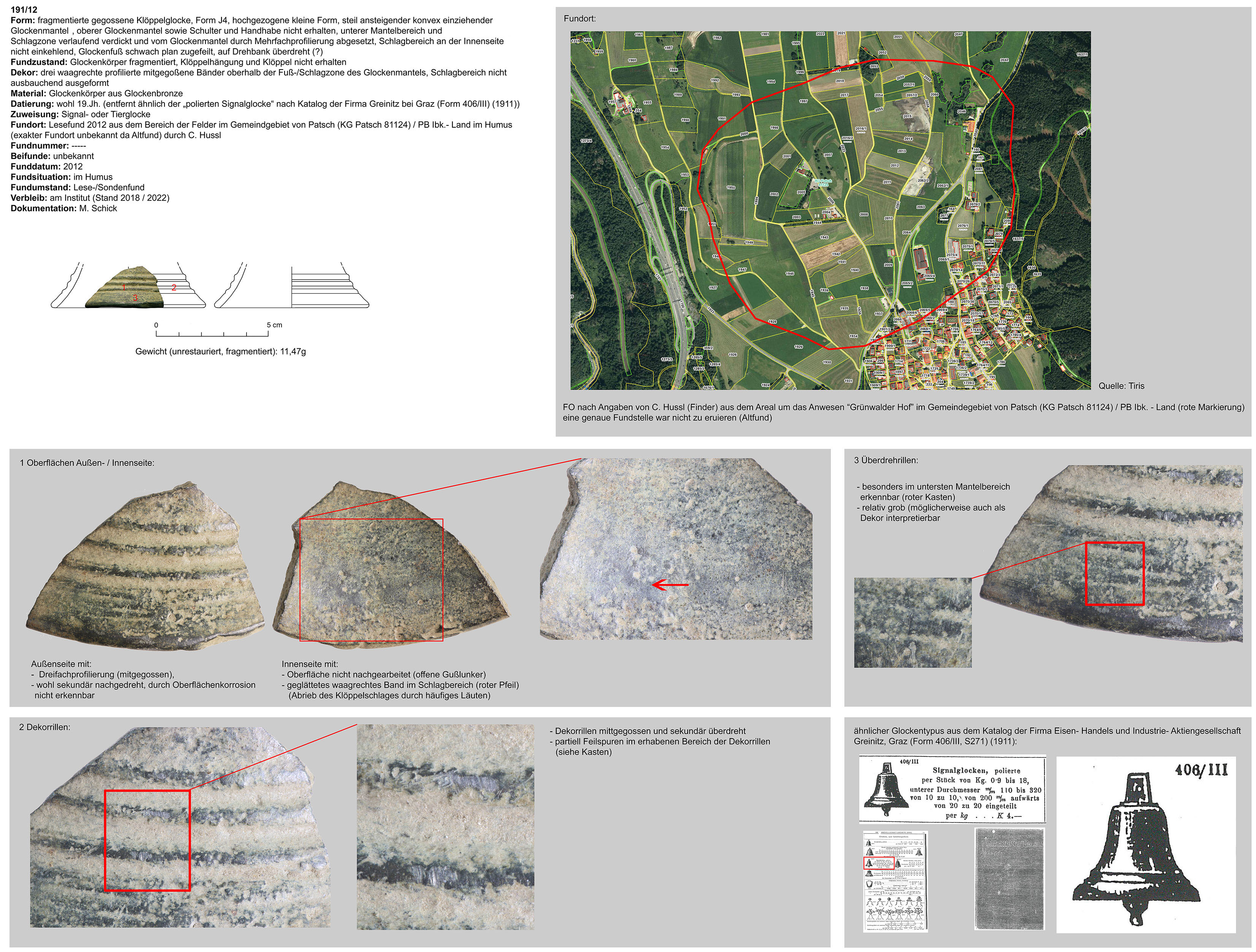 | Patsch, Innsbruck - Land (Hussl) | Mittellage (Lesefund) | mitgegossene Dekorrillen im Schlagbereich, profilierter unterer Mantel | |||