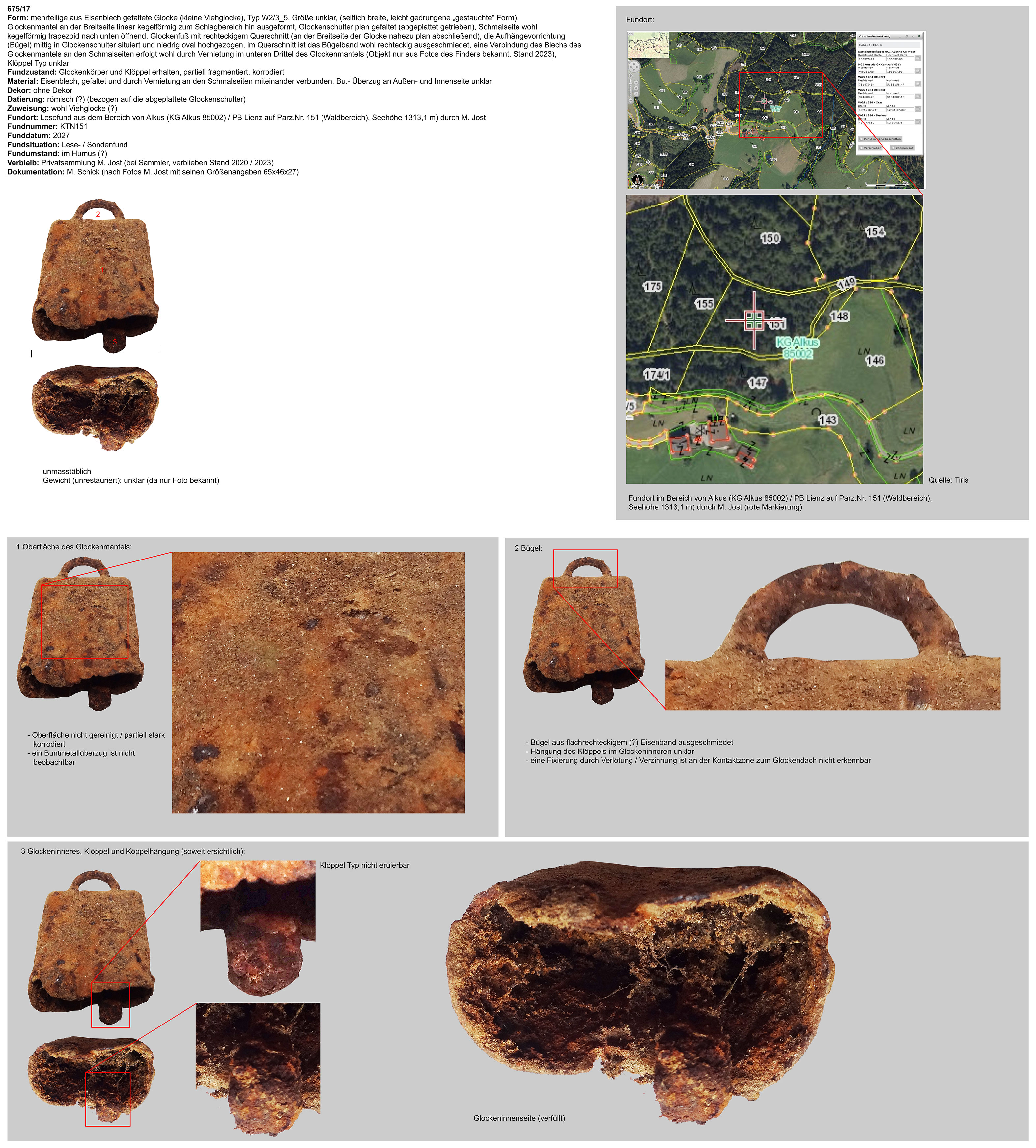 Formale Kriterien: seitlich breite, leicht gedrungene, gestauchte Form; Breitseite der Glocke linear keilförmig nach oben verjüngend; Schmalseite wohl keilförmig zum Schlag hin erweitert; Bügel wenig hochgezogen, mittig in Glockenschulter situiert, oval mit rechteckigem Querschnitt, stark von Schulter abgesetzt; Schlag relativ plan abschießend, Schlagquerschnitt rechteckig; Glockendach flach ausgeformt (abgeplattet); umgangssprachliche Bezeichnung: Keilschelle