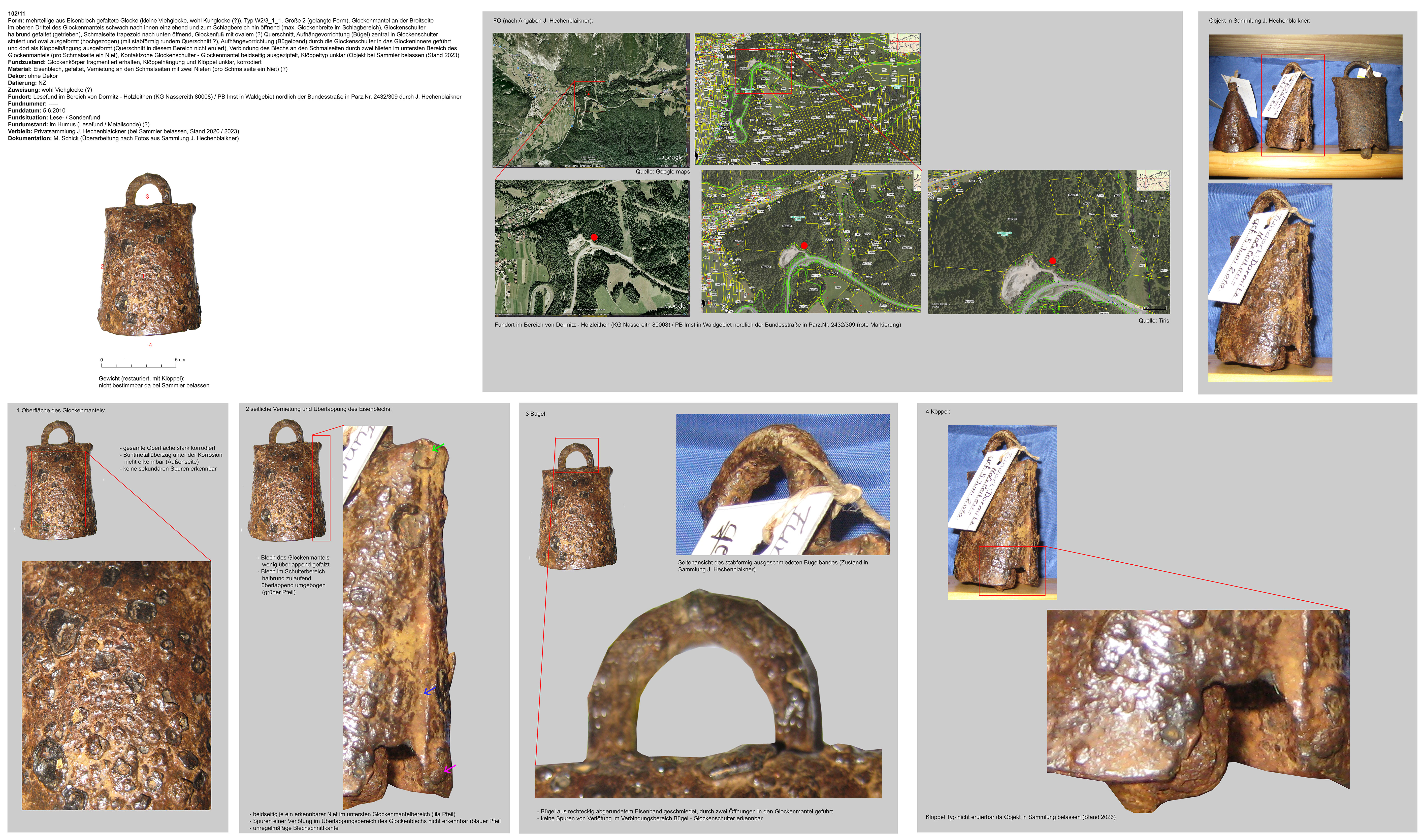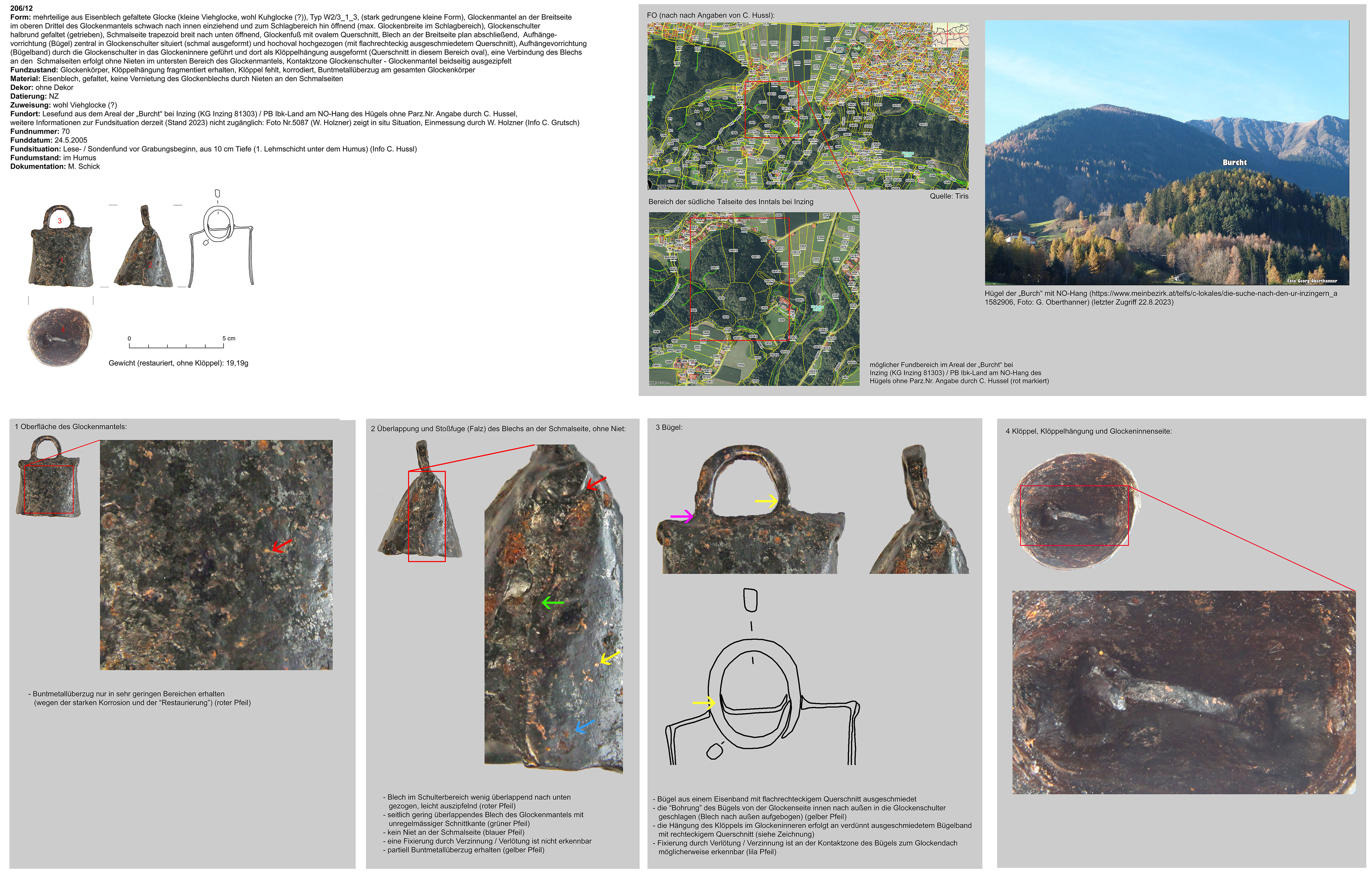 Schlagbereich; Glockendach abgerundet; Glockenfuß mit ovalem Querschnitt, leicht konkav-gerader einziehender Abschluß; Bügel eingesetzt, vom Glockendachrand abgesetzt, hochgezogen mit quadratisch-rechteckigem Querschnitt; Kontaktzone Schulter - Glockenmantel stark ausgezipfelt;