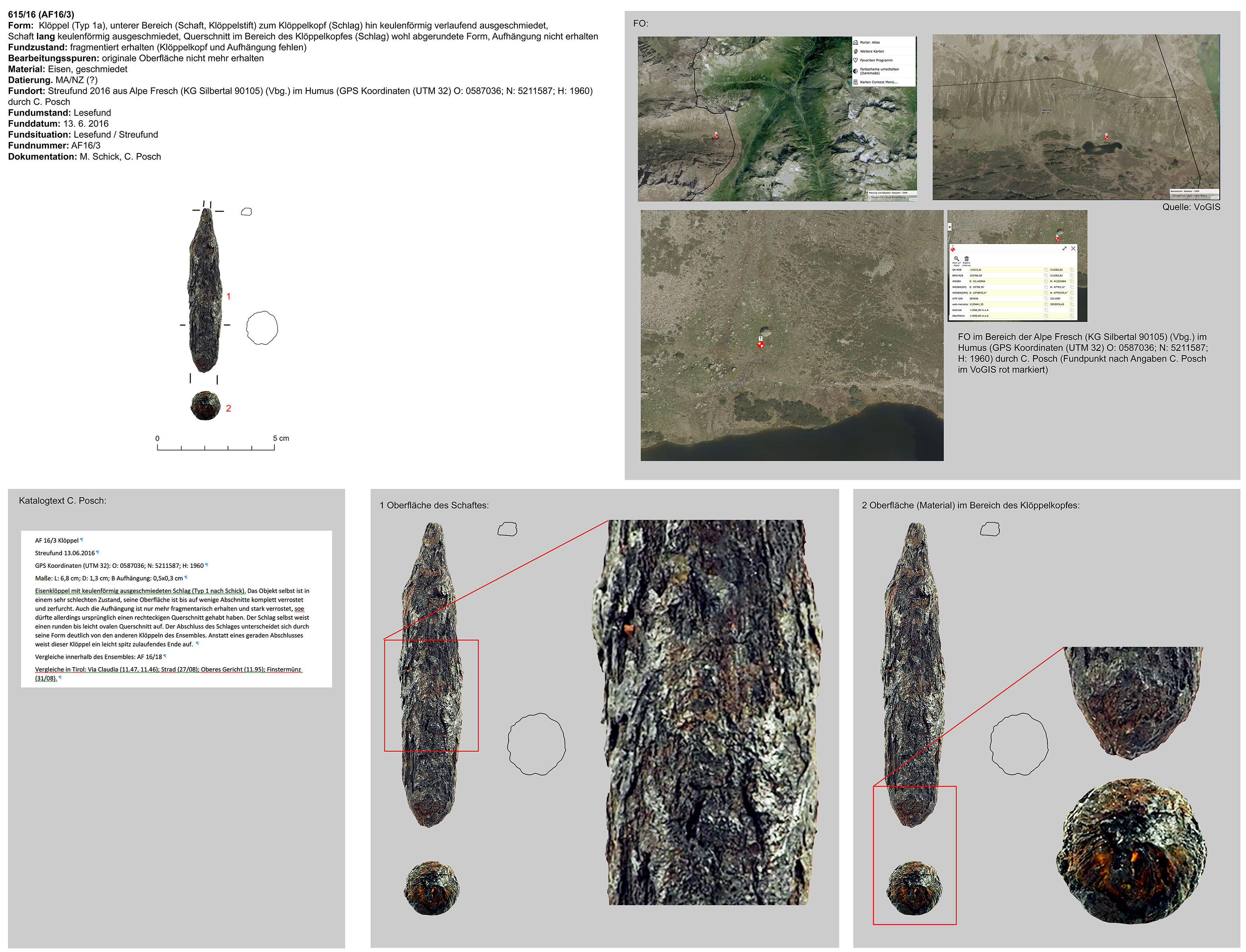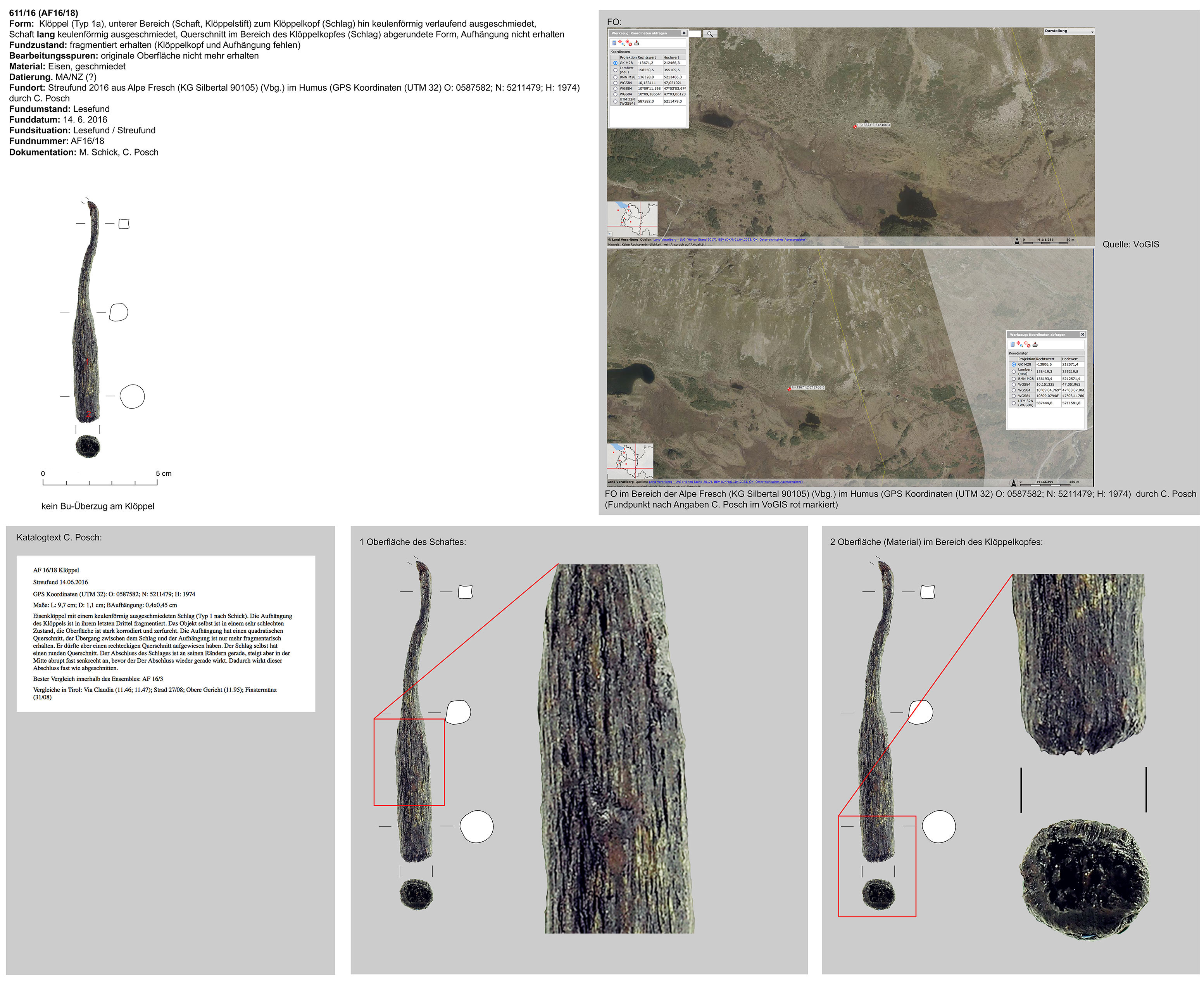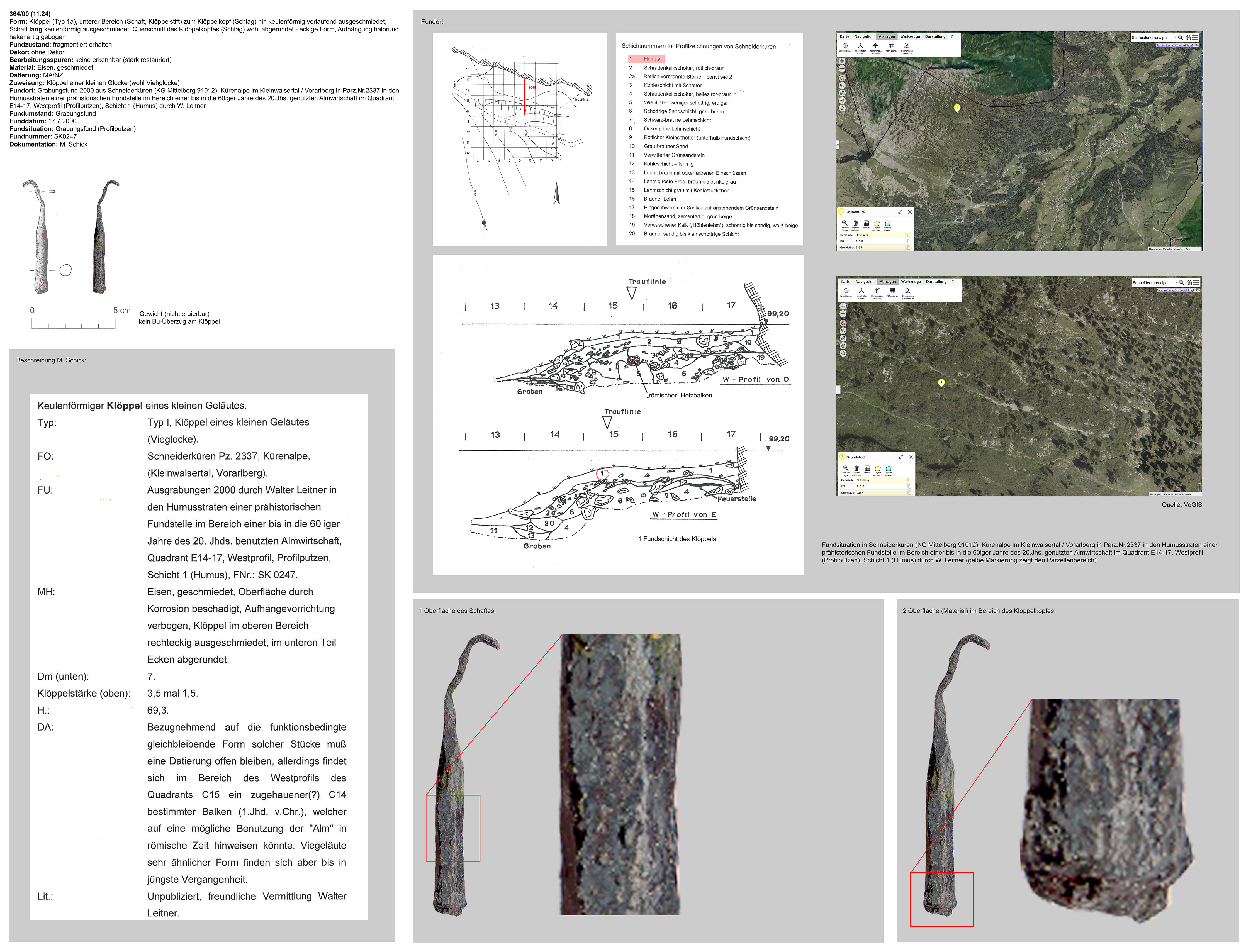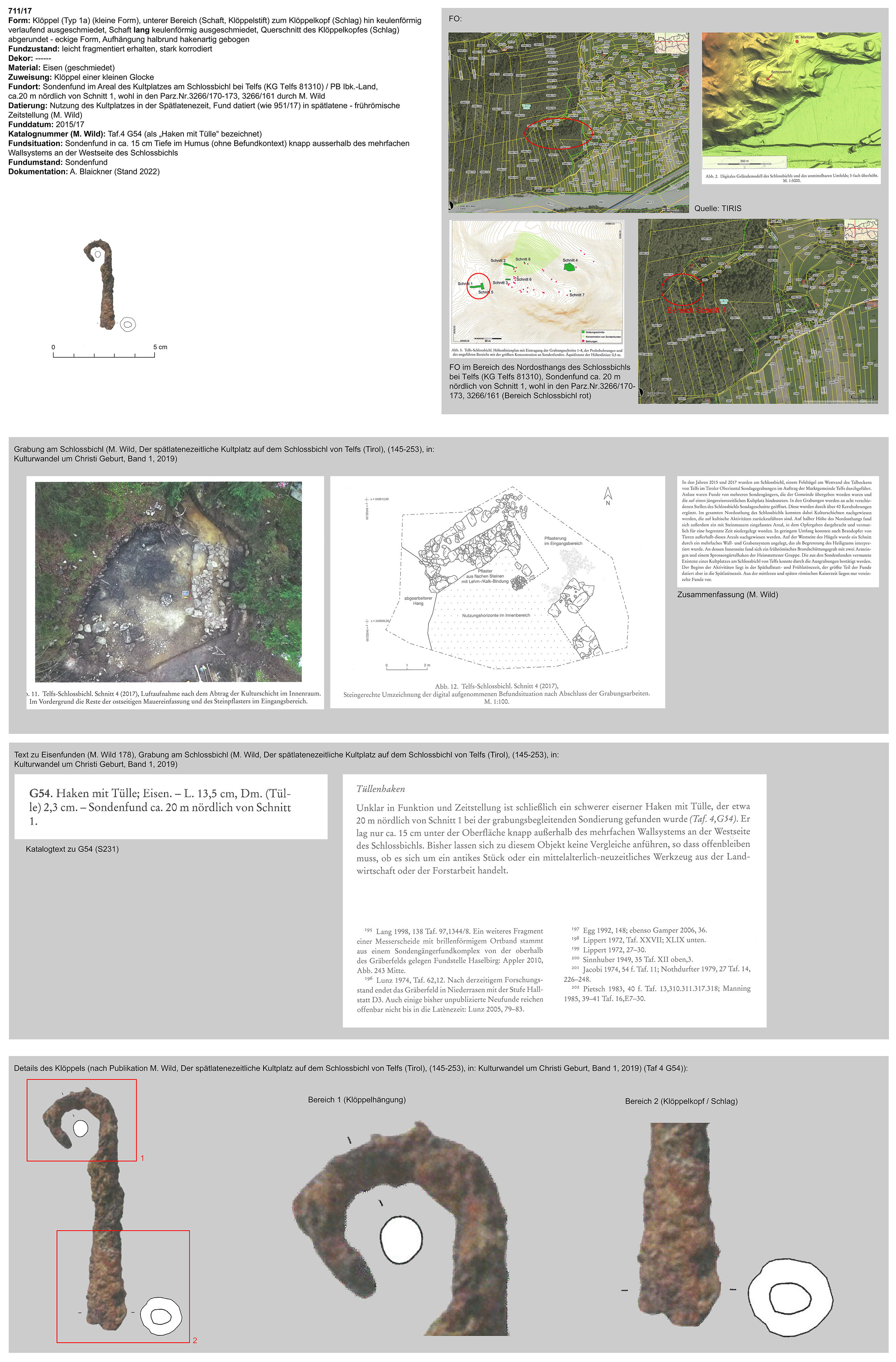 Sondenfund im Areal des Kultplatzes am Schlossbichl bei Telfs (KG Telfs 81310) / PB Ibk.-Land, ca.20m nördlich von Schnitt 1, wohl in den Parz.Nr.3266/170-173, 3266/161; M. Wild | |||