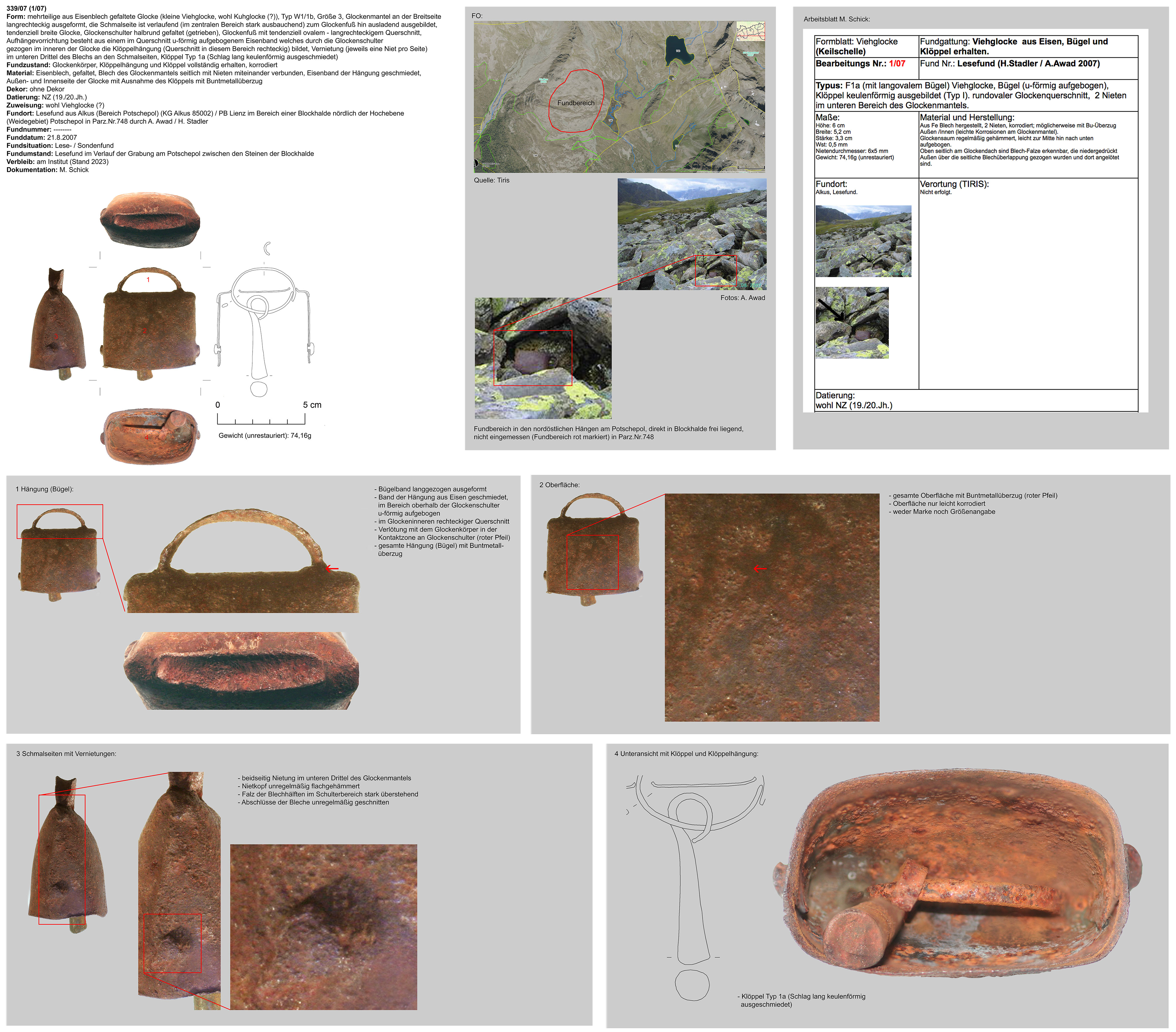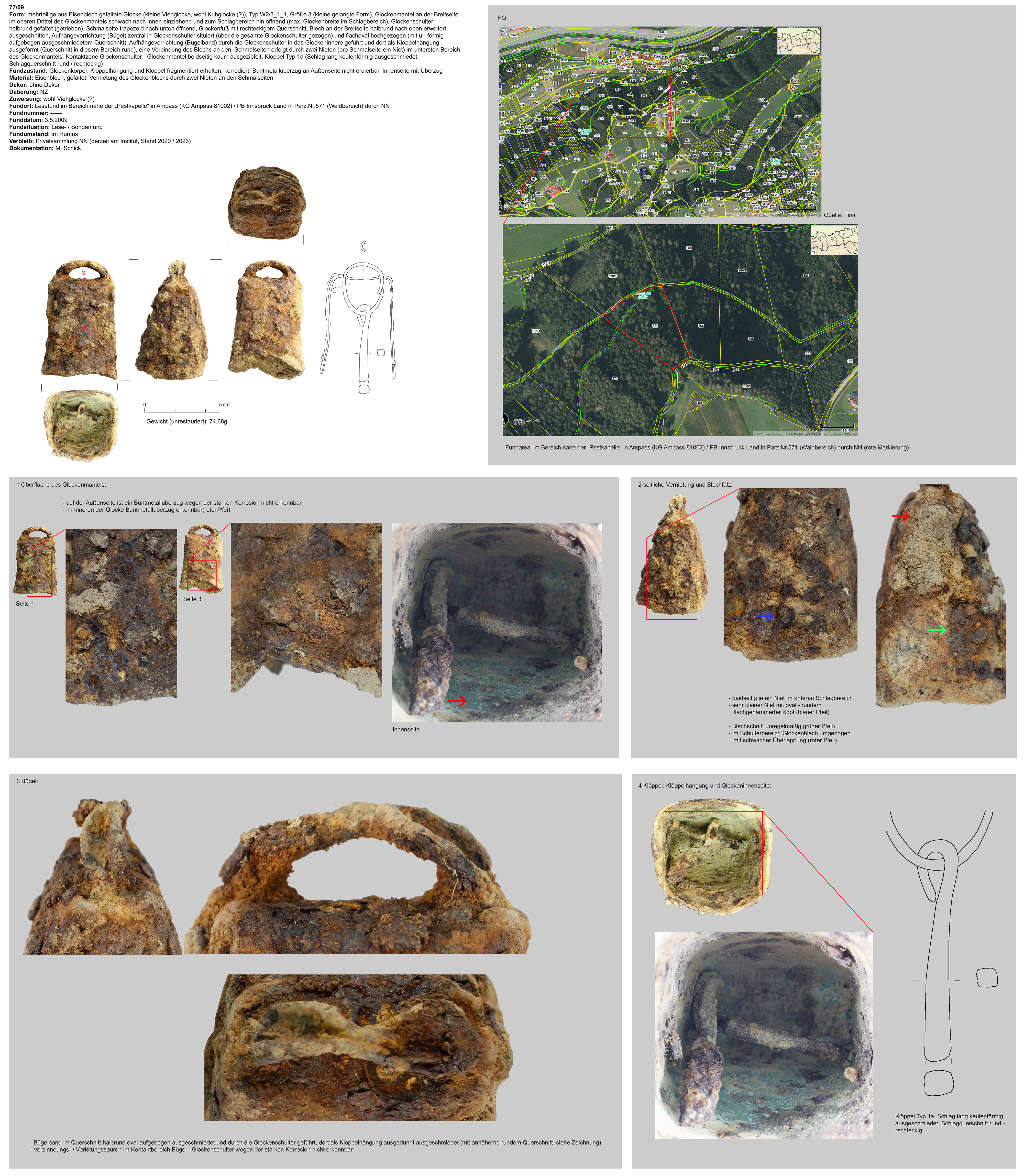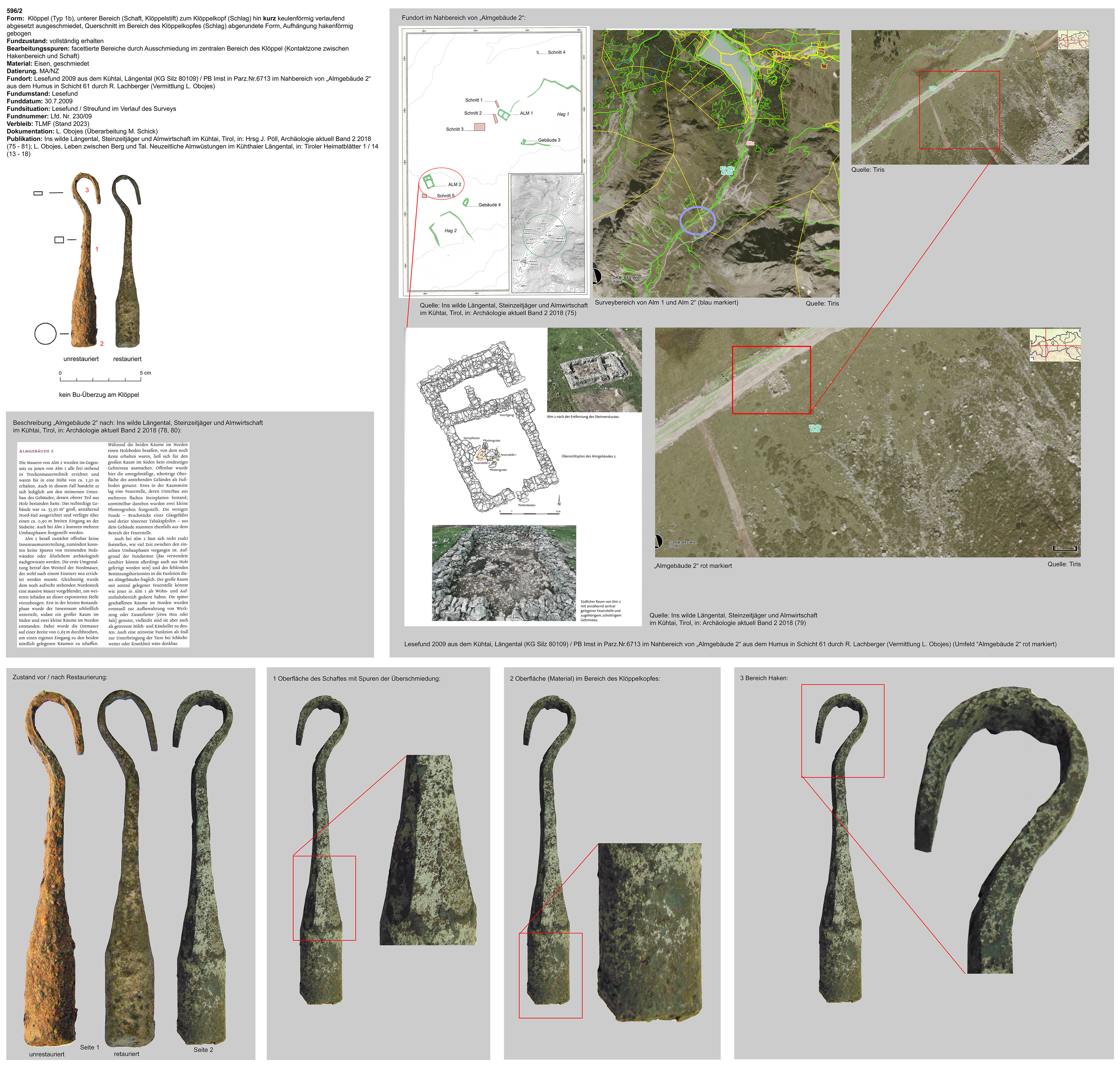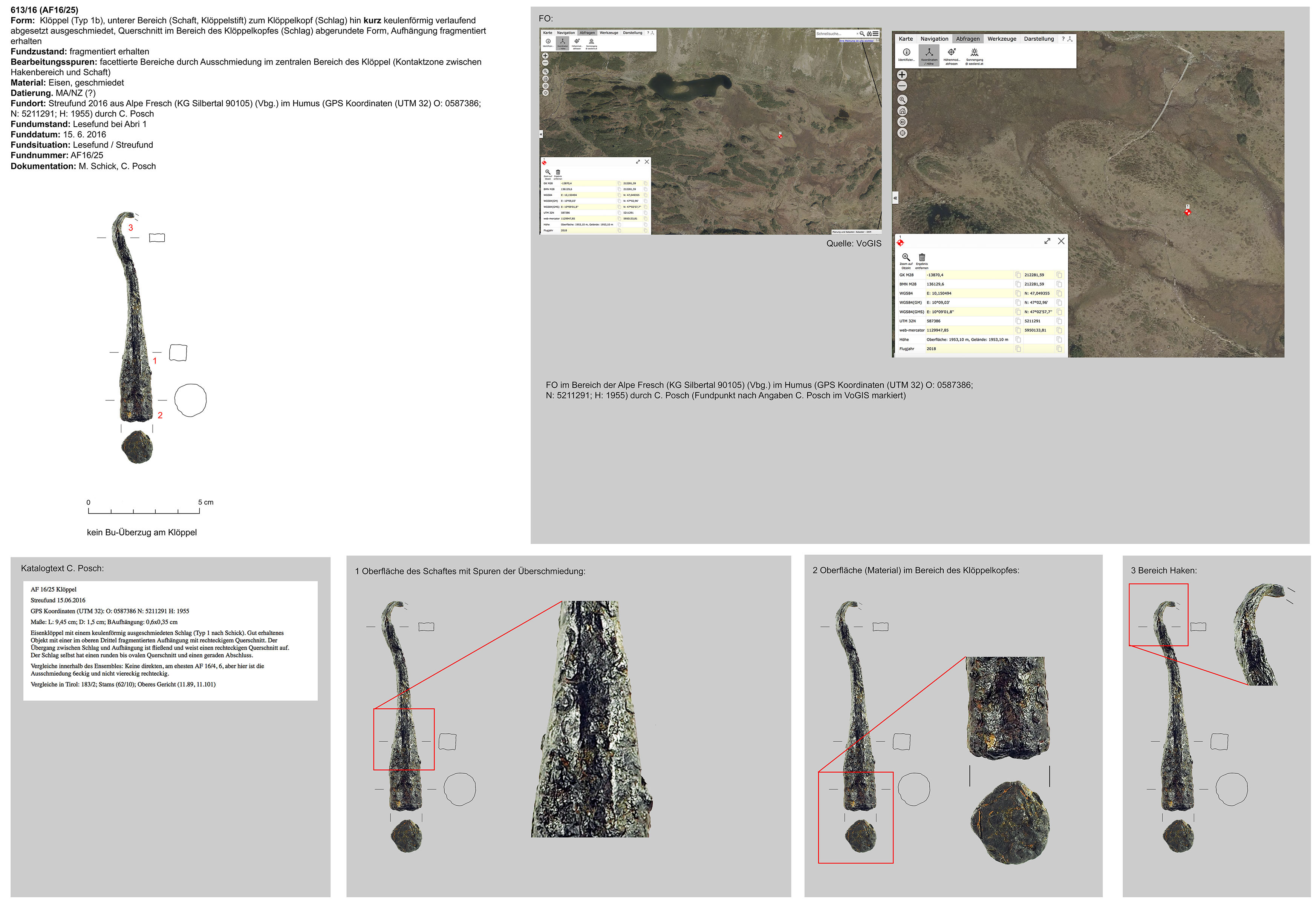 Sondenfund im Areal des Kultplatzes am Schlossbichl bei Telfs (KG Telfs 81310) / PB Ibk.-Land, ca.20m nördlich von Schnitt 1, wohl in den Parz.Nr.3266/170-173, 3266/161; M. Wild | |||