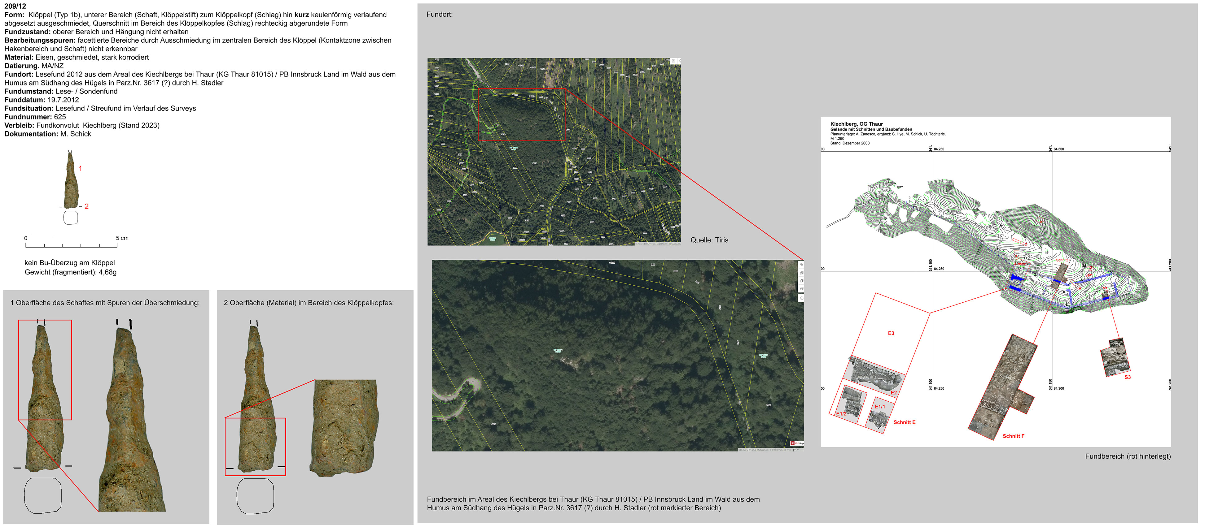 Lesefund 2012 aus dem Areal des Kiechlbergs bei Thaur (KG Thaur 81015) / PB Ibk.-Land im Wald aus dem Humus am Südhang des Hügels in Parz.Nr. 3617 (?); H. Stadler