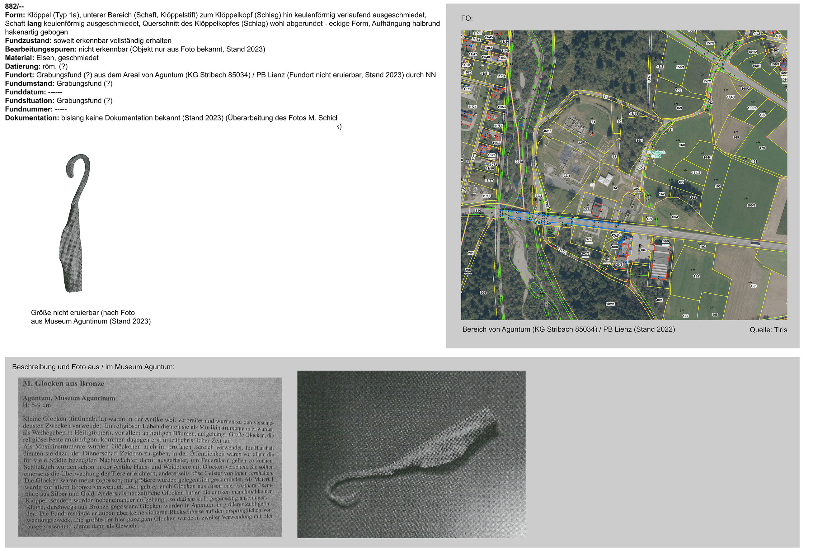 | römisch (?) | Grabungsfund (?) aus dem Areal von Aguntum (KG Stribach 85034) / PB Lienz (Fundort nicht eruierbar, Stand 2023) |