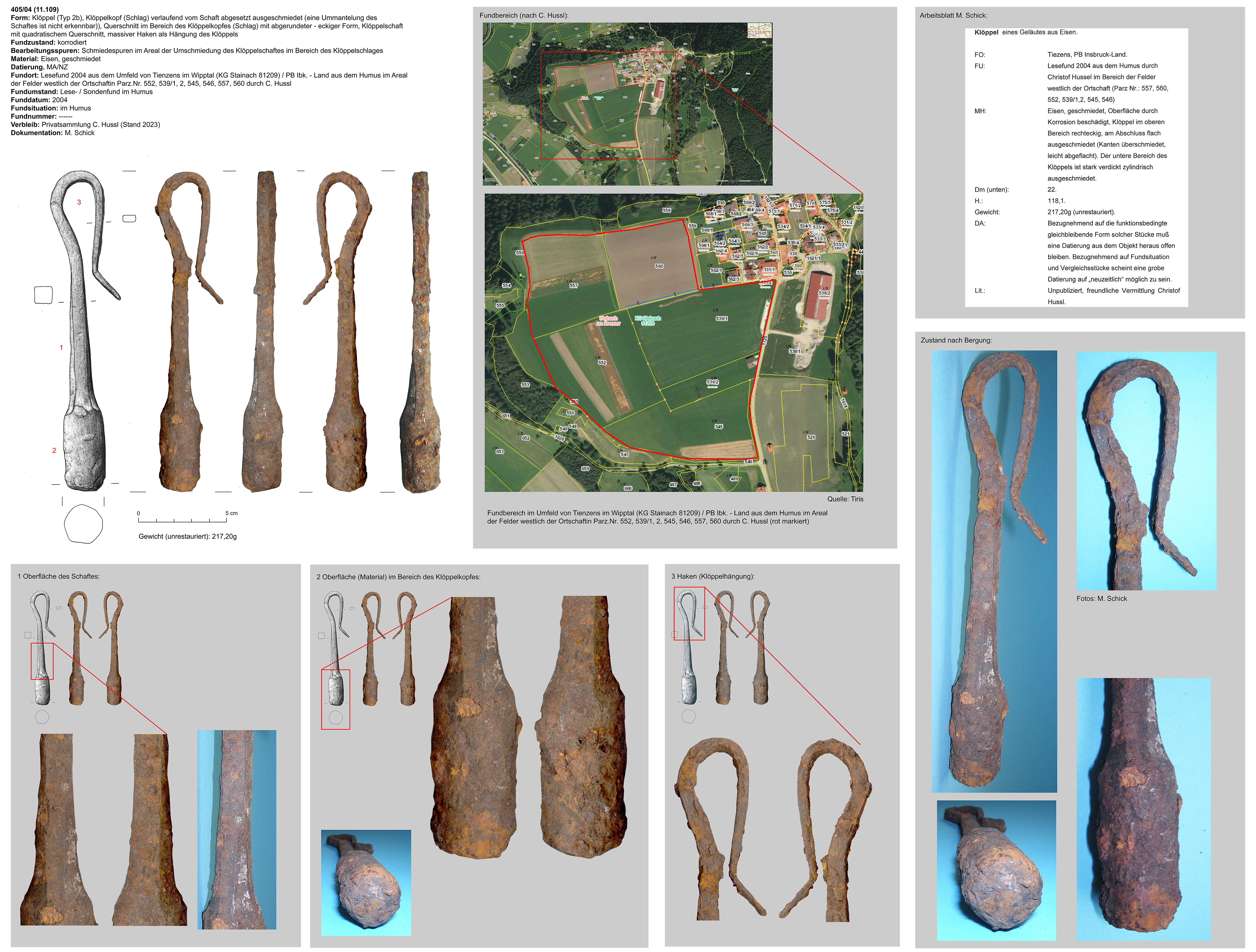 Lesefund 2004 aus dem Umfeld von Tienzens im Wipptal (KG Stainach 81209) / PB Ibk. - Land aus dem Humus im Areal der Felder westlich der Ortschaftin Parz.Nr. 552, 539/1, 2, 545, 546, 557, 560; C. Hussl | ||
