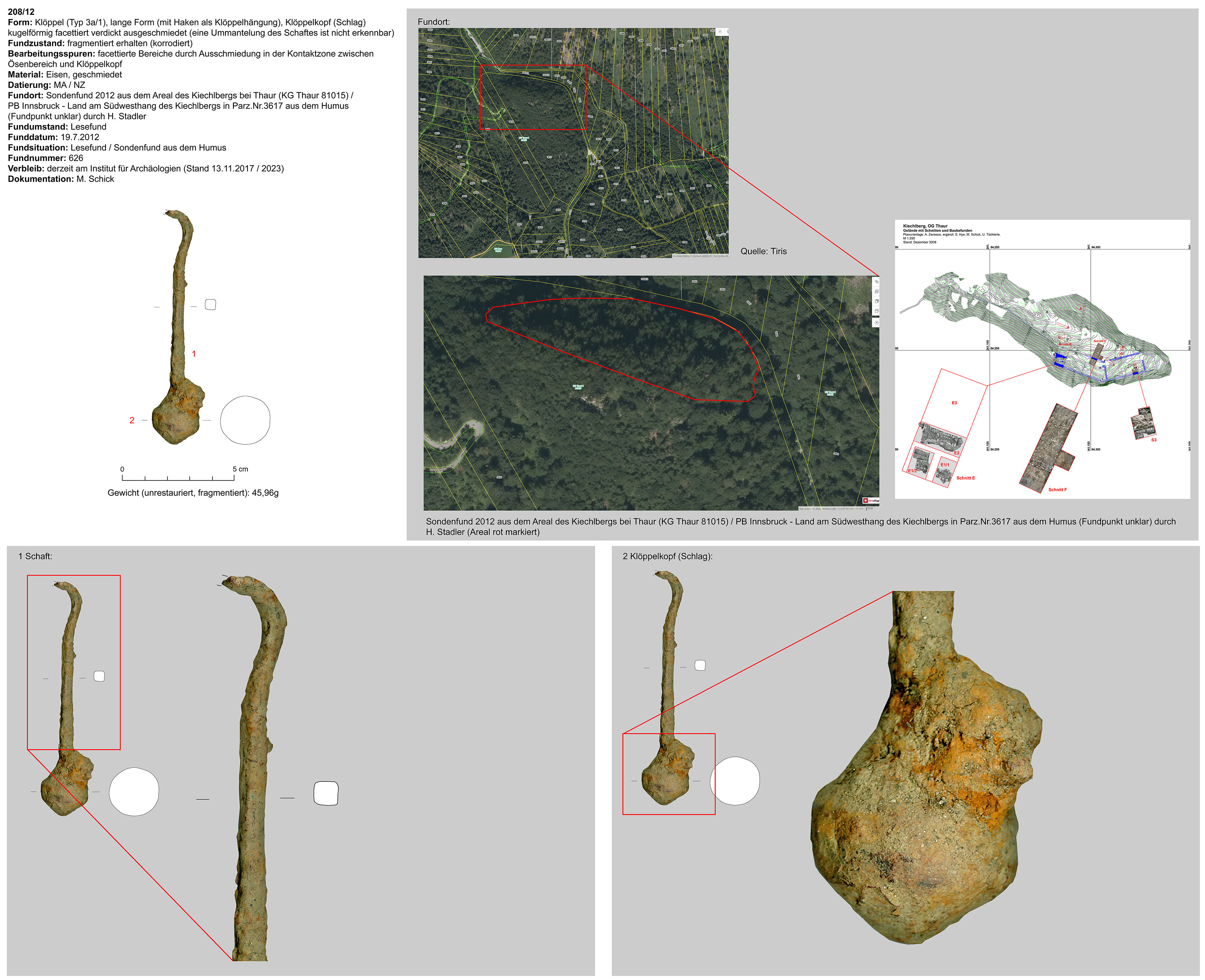 Sondenfund 2012 aus dem Areal des Kiechlbergs bei Thaur (KG Thaur 81015) /PB Innsbruck - Land am Südwesthang des Kiechlbergs in Parz.Nr.3617 aus dem Humus (unbestimmt); H. Stadler