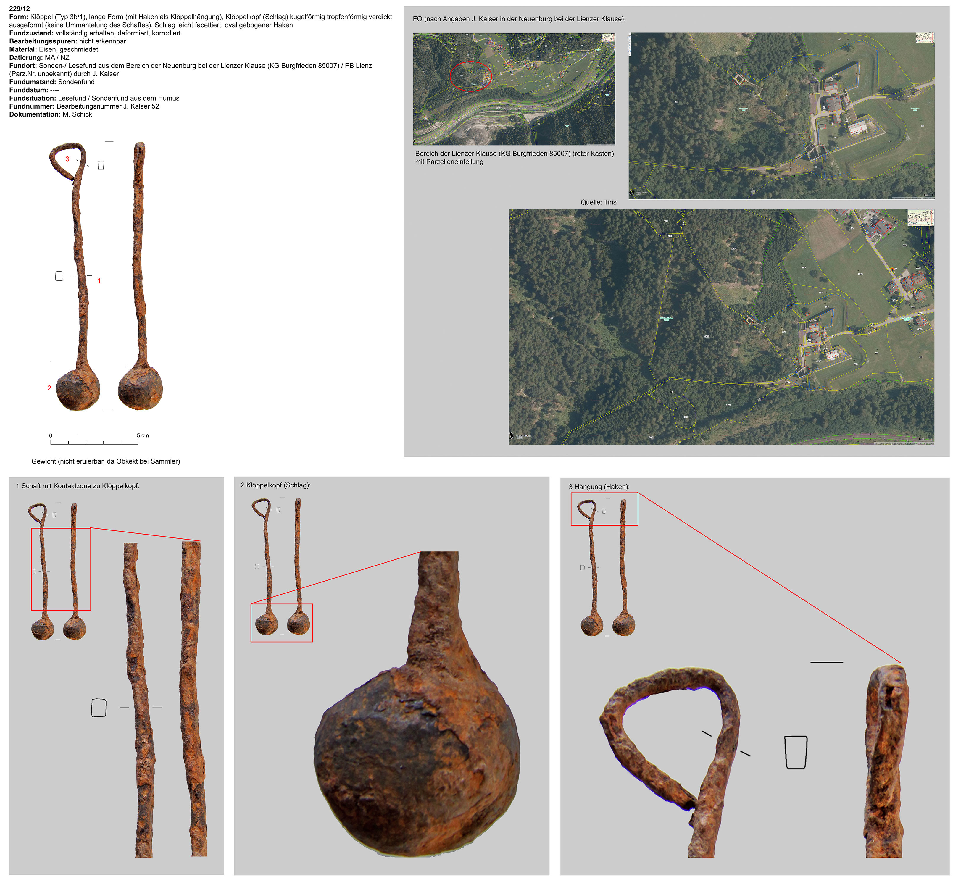 Sonden-/ Lesefund aus dem Bereich der Neuenburg bei der Lienzer Klause (KG Burgfrieden 85007) / PB Lienz (Parz.Nr. unbekannt); J. Kalser