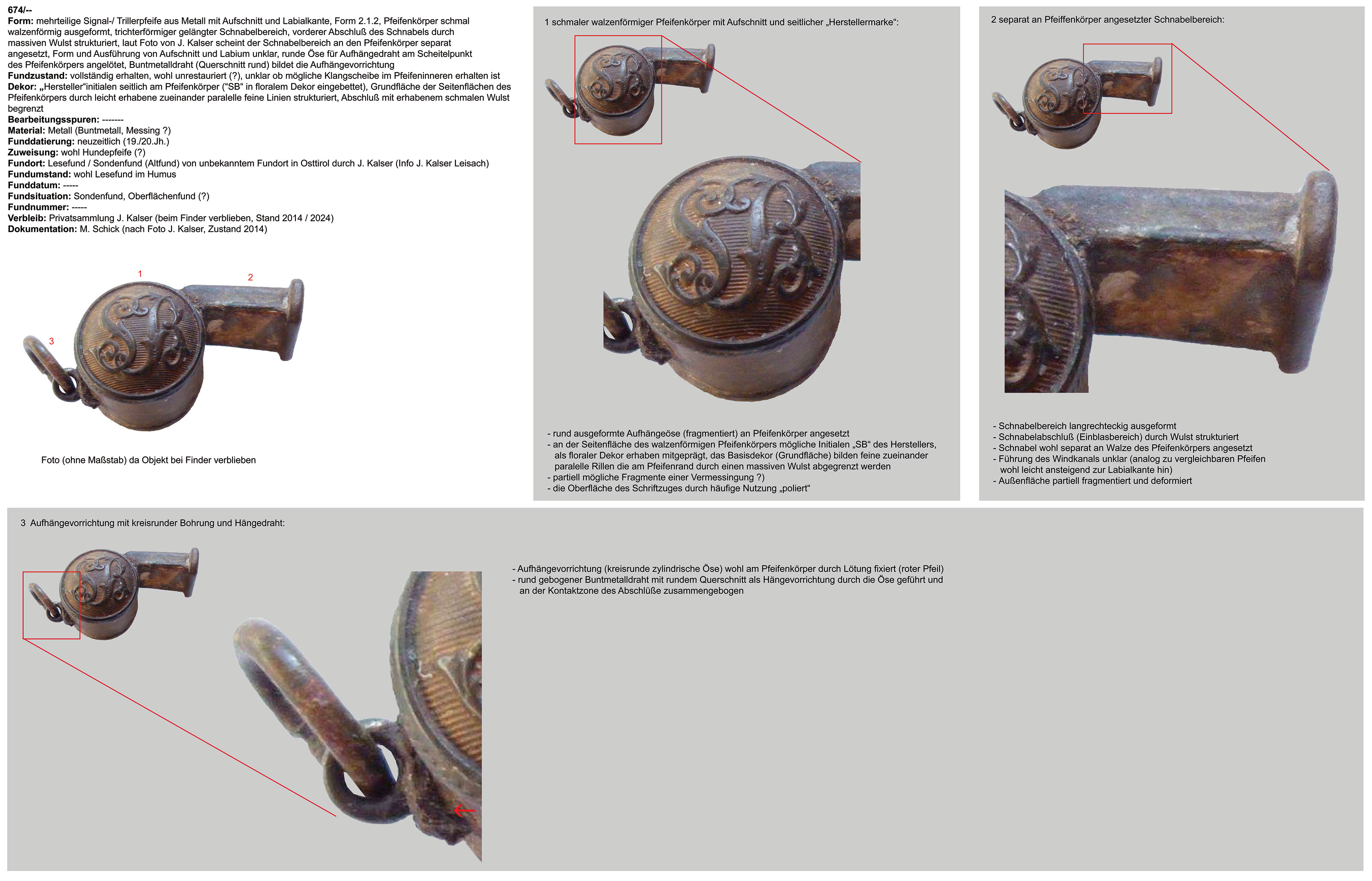 | 674 | walzenförmiger Klangkörper mit trichterförmigem Einblaskanal, kaum seitlich überstehender Klangkörperbereich, Innenbereich unbestimmt (Objekt bei Finder) |