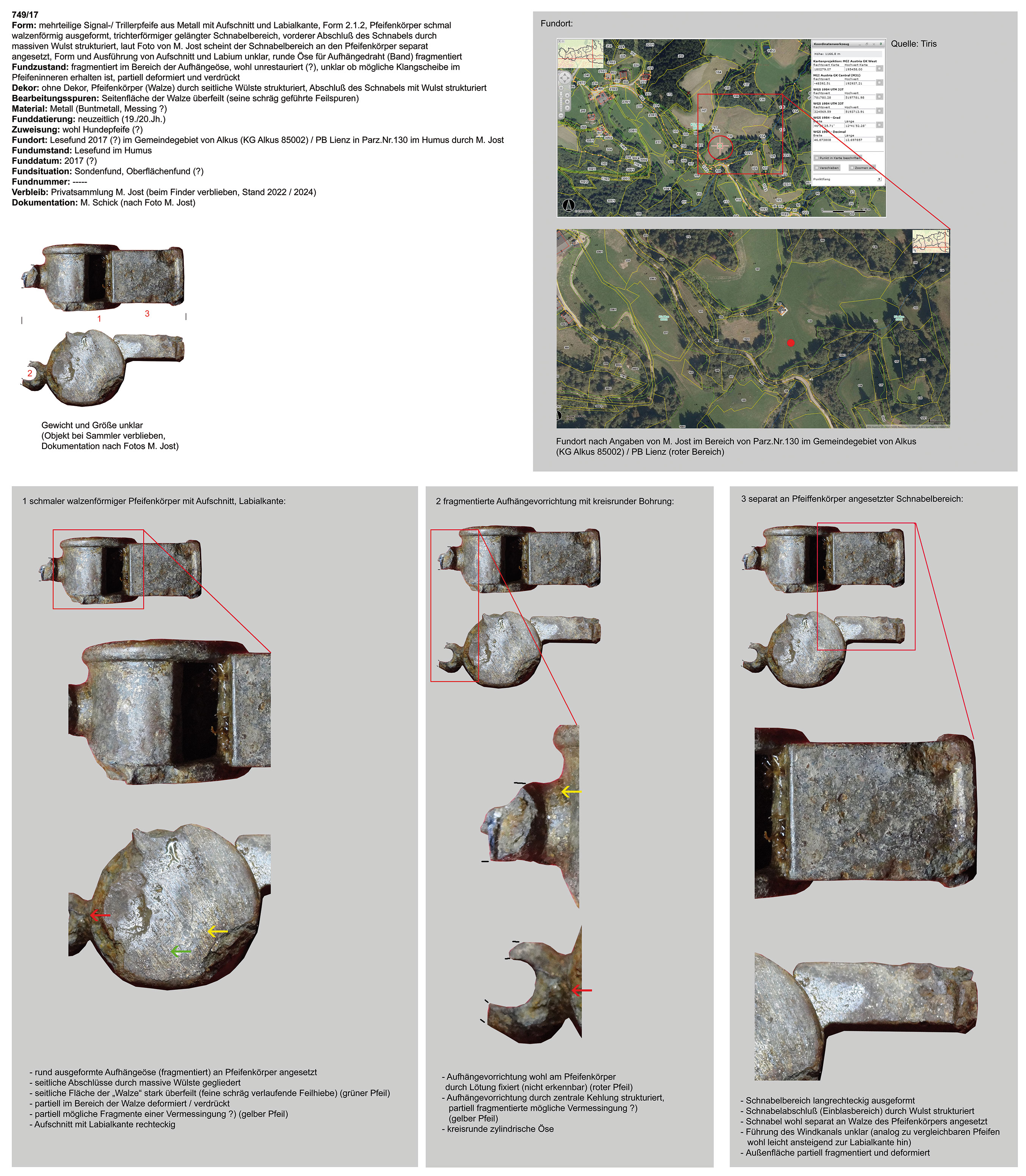 | 749/17 | walzenförmiger Klangkörper mit trichter-/rechteckigförmigem Einblaskanal, kaum seitlich überstehender Klangkörperbereich, Innenbereich unbestimmt (Objekt bei Finder) |