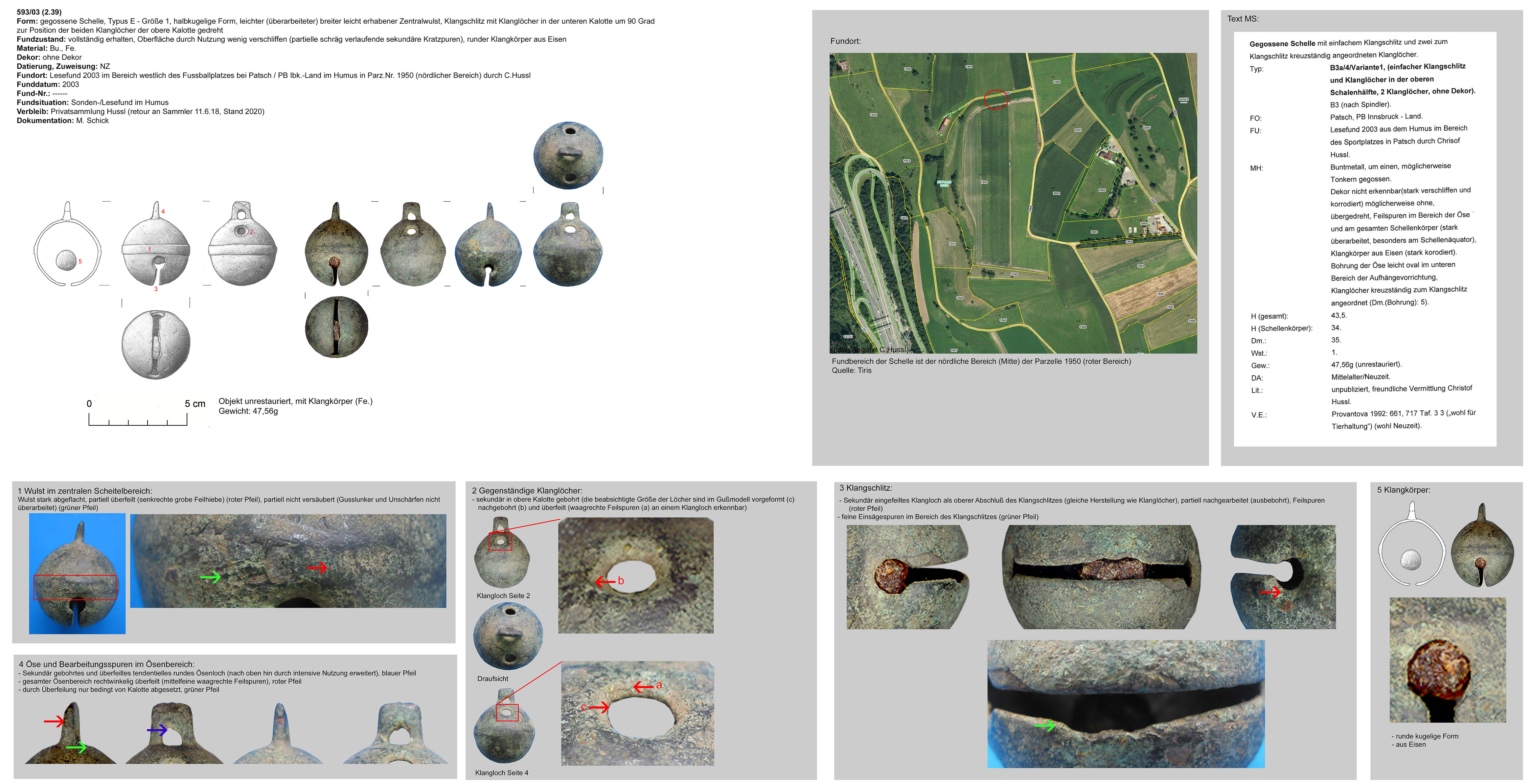 | 895/19 | kugelig, Buntmetall | Bereich der „unteren Terrassen“ beim Anwesen “Grünwalder Hof“ in Patsch-Umgebung (KG Patsch (81124)) / PB. Ibk-Land im Bereich der Parz. Nr.1979/1 (Ch. Hussl) |