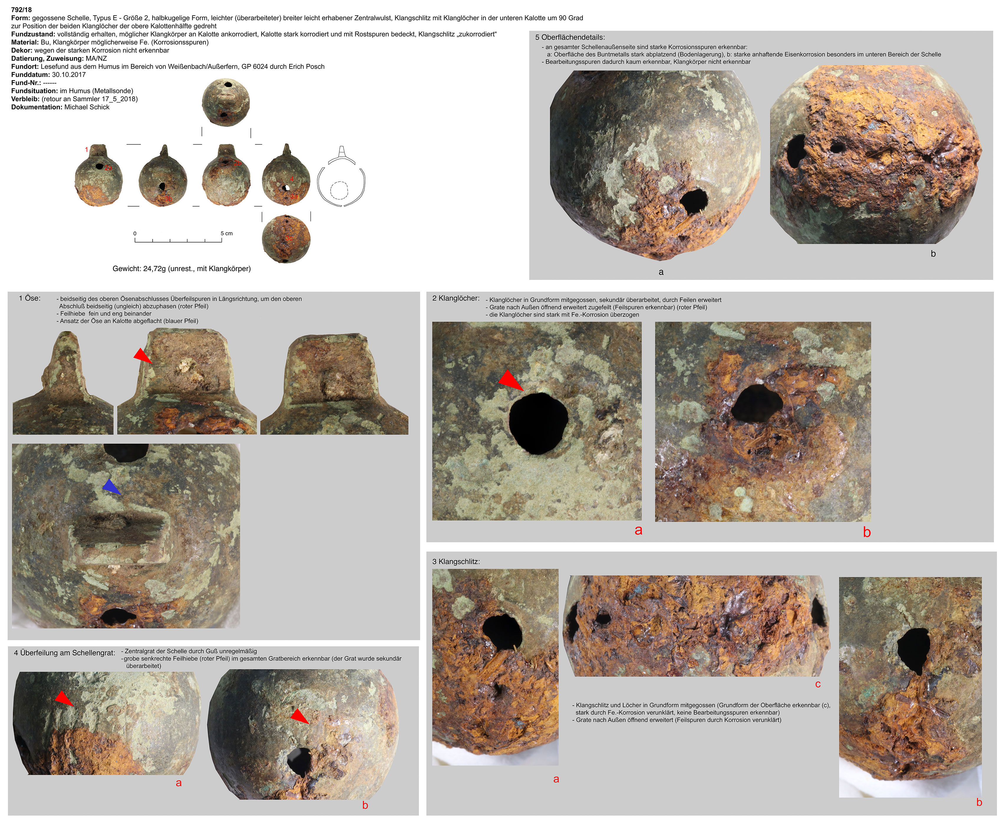 | 842/18 | kugelig, Eisen | Patsch/Umgebung, Altfund (Ch. Hussl) | Mittellage/Humus (Lesefund) | ||