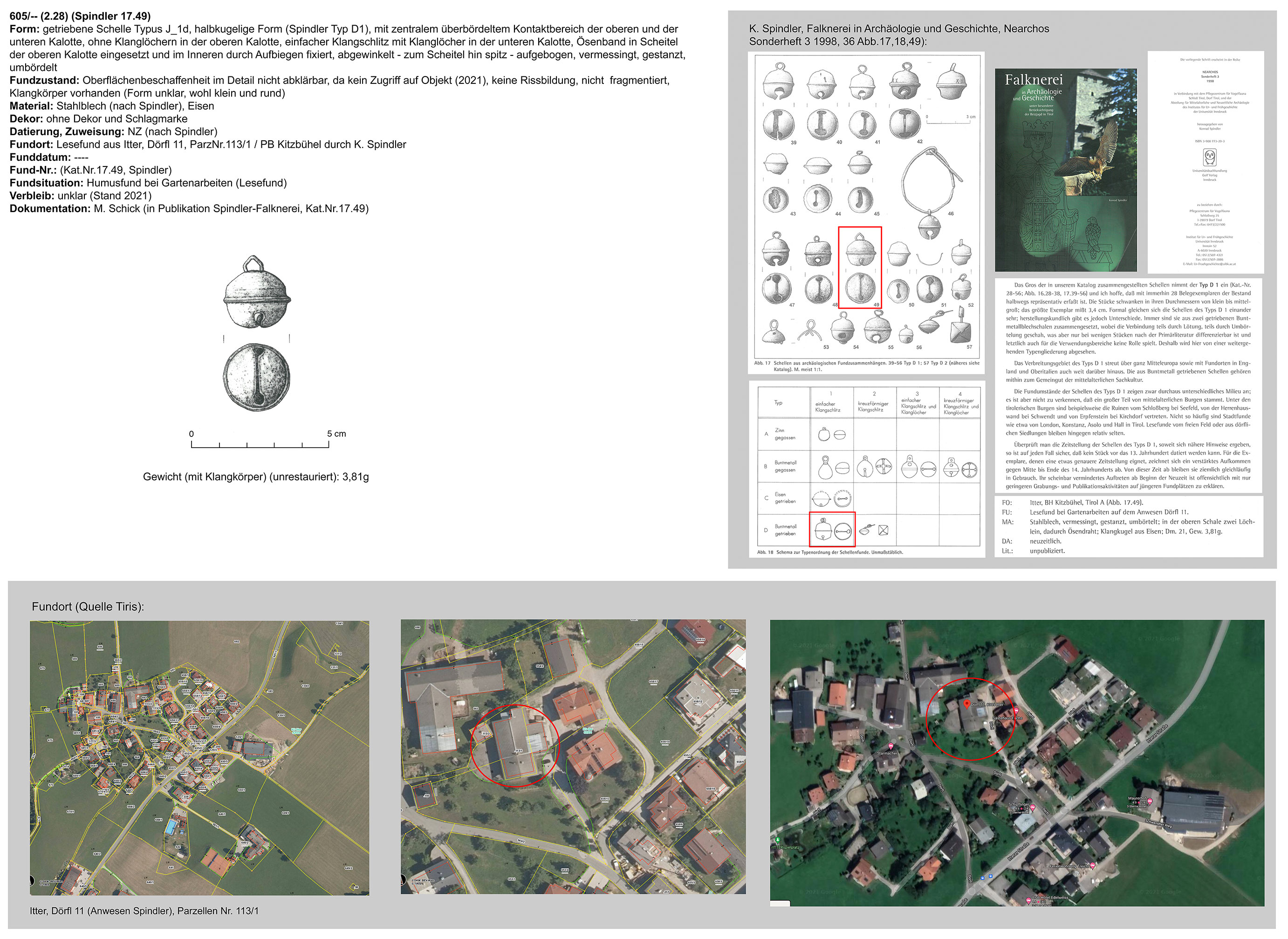 | 605/00 (2.28) | vermutlich rund, Eisen | Itter, Dörfl 11, Parz. Nr.113/1, Lesefund auf dem Anwesen (K. Spindler) |