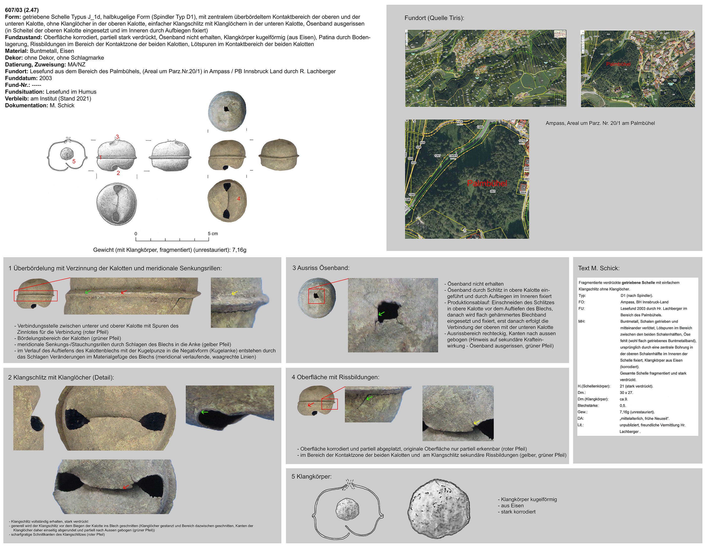 | 607/03 (2.47) | kugelig, Eisen | Ampass, Palmbühel (Bereich Parz.Nr.20/1 (R. Lachberger) | Tallage (Lesefund) | ohne | |