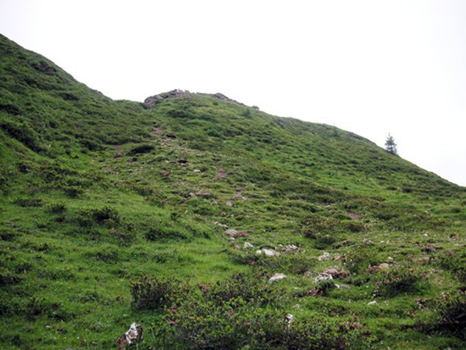 Umgebung des mittelbronzezeitlichen Depotfundes vom Moosbruckschrofen am Piller Sattel.