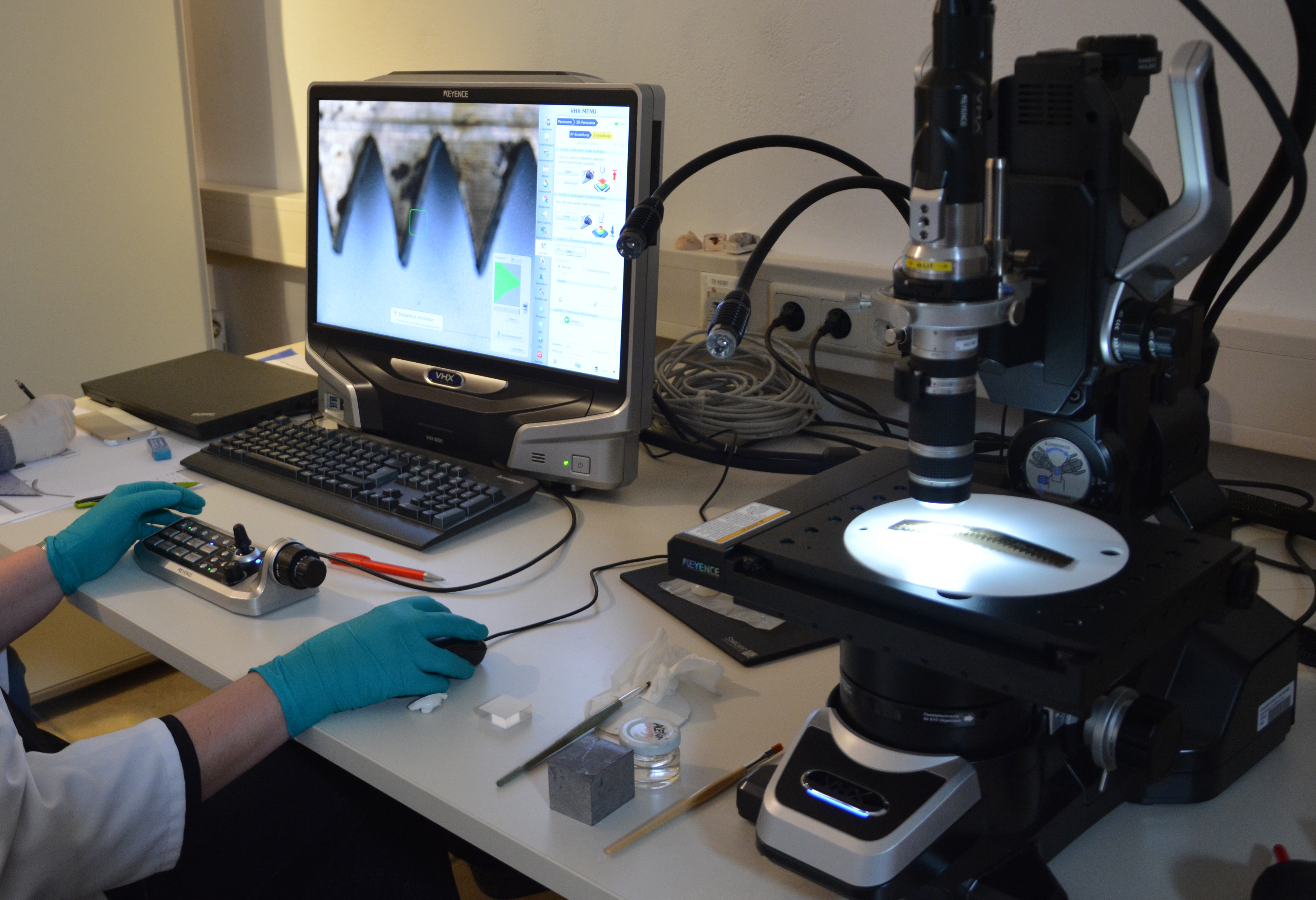Das von einer Kooperation unterschiedlicher Personen und Institutionen getragene Projekt soll daher in erster Linie Fragen zu Herstellungstechnik und Verwendungsweise dieser Werkzeuge beantworten: Wie wurden die Zähne bzw. Hiebe gefertigt? Wie wurden die Werkzeuge geschäftet? Für das Bearbeiten welcher Materialien eignen sich die Werkzeuge? Wie schnell nutzen sich die Werkzeuge ab? Wie wurden die Werkzeuge funktionstüchtig gehalten? Um Antworten auf all diese Fragen zu bekommen sind ein mehrstufiges Analyseverfahren sowie experimentelle Versuchsreihen geplant. Mithilfe digitalmikroskopischer Aufnahmen (Digitalmikroskop Keyence VHX 6000) können Herstellungs- und Gebrauchsspuren an den Originalfunden sichtbar gemacht und exakt vermessen werden (Abb. 2-4). Um eine möglichst breite Vergleichsbasis zu schaffen, werden dabei sowohl die Objekte aus Ehrwald wie auch aus dem Hortfund von Fließ und dem Gräberfeld von Hallstatt mikroskopiert. Zudem erfolgt in experimentalarchäologischen Versuchsreihen die Anfertigung von originalgetreuen Repliken, die im Anschluss an unterschiedlichen Werkstoffen getestet werden. Einen weiteren Schritt bildet daraufhin die Analyse der Herstellungs- und Gebrauchsspuren an den modernen Nachbildungen. Der Vergleich dieser Spuren mit jenen an den Originalen ermöglicht letztendlich Rückschlüsse auf Herstellung und Verwendung der Werkzeuge in der Eisenzeit.
