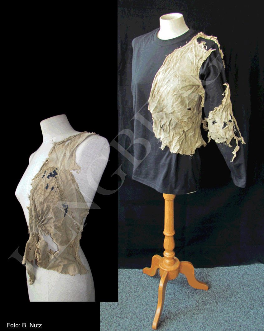 Among the 15th century textiles from Lengberg Castle, salvaged in 2008 during reconstruction, are fragments of various shirts (Fig. 1, bottom left and right) made of linen and linen lining (Fig. 1, top left) of former woolen clothes. Now, for the first time, the larger fragments can be displayed in their wearing method by using dress forms. The two dress forms were provided to the research project “Mittelalterliche Textilien von Schloss Lengberg, Osttirol” and the Arbeitsgruppe für Bekleidung und textile Techniken (ABT, Work Group for Apparel and textile Techniques), Institute of Archaeology, Department of Medieval and Modern Archaeology, University of Innsbruck, by the tailor´s-shop Maß-Moden-Mauracher, Jenbach.