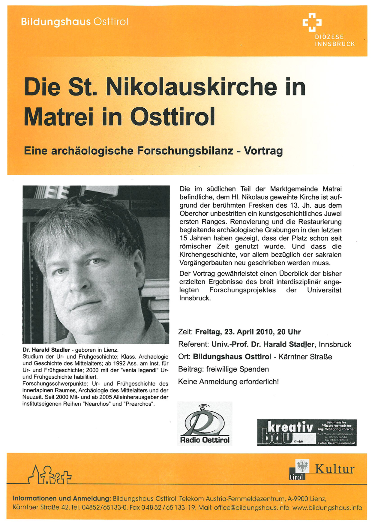 Vortrag "Die St. Nikolauskirche in Matrei in Osttirol", Bildungshaus Osttirol, Lienz, 23.04.2010, 20.00