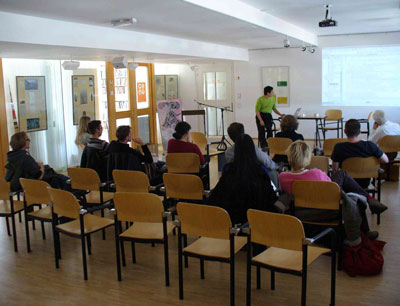 Die Fortbildung besteht aus 3 x 2 Einführungsstunden XML und TEI, dann folgen 2 x 3 Arbeitsstunden, in denen Probleme durchgesprochen und Lösungen erarbeitet werden sollen. Danach sollen die AnwenderInnen in der Lage sein, Probleme miteinander zu lösen.