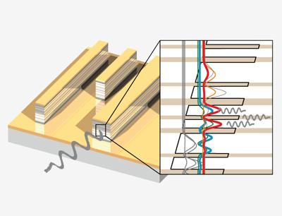 Seit der Erfindung vor 50 Jahren hat das Laserlicht unseren Alltag erobert. In allen Lebensbereichen werden heute Laser unterschiedlichster Wellenlänge und Leistung eingesetzt, von der Unterhaltungselektronik über die Telekommunikation bis zur Medizin. Es sind jedoch nicht alle Wellenlängen gleich gut erschlossen. Für den Bereich der fernen Infrarot- und der Terahertz-Strahlung stellen sogenannte Quanten-Kaskadenlaser die technisch bedeutendste Quelle dar. Die Lichtverstärkung in einem solchen Kaskadenlaser wird durch eine wiederholte Abfolge aus präzise konstruierten Halbleiterschichten unterschiedlicher Dotierung erzielt, durch die elektrischer Strom geleitet wird. „Die Elektronen durchlaufen diese Struktur durch eine genau bestimmte Abfolge von Tunnelprozessen und Quantensprüngen und senden dabei kohärente Lichtteilchen aus“, erklärt Helmut Ritsch vom Institut für Theoretische Physik an der Universität Innsbruck das Funktionsprinzip. „Zwischen den einzelnen Schichten stoßen die Elektronen allerdings mit anderen Teilchen und erwärmen auf diese Weise den Laser.“ Quanten-Kaskadenlaser funktionieren deshalb nur, solange sie stark gekühlt werden. Erhitzt sich ein Bauteil zu stark, erlischt das Laserlicht.