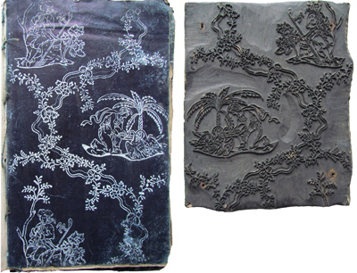 Der aus Gummiarabikum und Tonerde bestehende Reservepapp wurde mit sogenannten Druckmodeln auf den Stoff aufgebracht. Die aus Holz und Metall gefertigten Druckmodeln wurden von sogenannten Formstechern oder Formschneidern hergestellt. „Während ein Formschneider Muster aus dem Holz herausschnitzt, bringt der Formstecher Ornamente aus Metall auf dem Model auf“, erklärt Beatrix Nutz den Unterschied.
