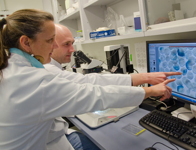 In den Projekten von Ute Rothbächers Gruppe geht es um das Zusammenspiel von Signalwegen und sogenannten Transkriptionsfaktoren, die für die Umschreibung von DNA in RNA verantwortlich sind. Rothbächers Mitarbeiter und Doktorand Willi Kari zum Beispiel widmet sich in seiner Arbeit einem kaum erforschten Prozess der Genregulation, in der der bedeutende Wnt-Signalweg eine untypische Rolle spielt. Der Wnt-Signalweg steuert grundlegende Lebensvorgänge wie Zellwachstum, Zellreifung und Zellspezialisierung. Wenn er aktiv ist, werden im Normalfall Gene eingeschaltet. In jenem, erst in jüngerer Zeit beobachteten Prozess, den Willi Kari erforscht, ist der Wnt-Signalweg aktiv, dennoch werden Gene ausgeschaltet. Welche Umstände dazu führen, ist Karis zentrale Forschungsfrage, die er zunächst am Institut für Entwicklungsbiologie Marseille (IBDM) am Fadenwurm C. elegans bearbeitet hat. „Die genaue Beschreibung dieses nicht-kanonischen Wnt-Signalwegs wird wichtige Ansätze für die Krebstherapie liefern“, zeigt sich Kari, dessen Arbeit bald abgeschlossen ist, überzeugt. Die Forscher gehen davon aus, dass fehlgesteuerte Wnt-Signalwege an der Entstehung von Darmkrebs, Hautkrebs und Medulloblastom, einem bösartigen embryonalen Tumor des Kleinhirns, beteiligt sind.
