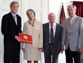 Vizerektor Manfried Gantner überreicht Eva Stehle die Urkunde für Ihren Vater.Prof. Philip Stehle, der an der Princeton University studierte, kam 1959 als Fulbright-Professor an die Universität Innsbruck. Er verbrachte das akademische Jahr 1959-60 am Institut für Theoretische Physik, wo er besonderes Interesse für die Entwicklung der Forschung in Österreich zeigte. In den Sommersemestern 1965 und 1985 war er erneut in Innsbruck. Während seiner ersten beiden Aufenthalte in Innsbruck waren die Kernreaktorphysik und später auch die Fusionsreaktorphysik die Forschungsschwerpunkte von Prof. Stehle. Auch wurde später eine Lehrkanzel für Elementarteilchenphysik errichtet, auf die Prof. Rothleitner berufen wurde. Diese Entwicklung war damals maßgeblich durch die Gründung des Europäischen Kernforschungszentrums (CERN) in Genf bestimmt, bei welcher Österreich Mitglied wurde. Schon zu dieser Zeit hatte Prof. Stehle recht eindringlich darauf hingewiesen, dass es sinnvoll wäre, in das neue Arbeitsgebiet der Laserforschung und Quantenoptik einzusteigen. Er wusste aus vielen Gesprächen mit amerikanischen Physikern sehr gut über zukünftige potentielle Möglichkeiten der Laserentwicklung und ihren Anwendungen Bescheid. Durch diesen frühzeitigen Einstieg in das Gebiet der Quantenoptik genießen die Forschungsstätten der Universität Innsbruck heute weltweit einen führenden Stellenwert in der Quantenphysik.