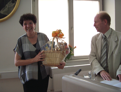Auch in der Wirtschaft gewinnt der slawische Raum und damit die slawischen Sprachen mehr und mehr an Bedeutung. „Slawistik ist keine brotlose Kunst“, scherzte Prof. Ingeborg Ohnheiser, als sie einen Geschenkskorb aus Lublin überreicht bekommt.