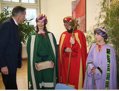 Kürzlich besuchten Kaspar, Melchior und Balthasar in Begleitung von Alumni Verein Gründer Dr. Lothar Müller Vizerektor Tilmann Märk und baten um eine Spende für ihre Aktion „Hilfe unter einem guten Stern 2007“.