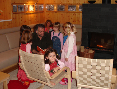 Mit einem köstlichen Frühstücksbuffet wurde der Tag gestartet und je nach Vorliebe konnte man auf den überraschend schneereichen Pisten Schi fahren, eislaufen oder einen Spaziergang in den 800 Jahre alten Zirbenwald machen. Nach Schnee und Kälte, genoss man die Sauna oder das Dampfbad. Ab 17.00 Uhr gab es Tee und Kekse am Kamin und Christian Jochum las Kindern und auch großen Zuhörern Wintergeschichten vor. Am Abend gab es neben Spiel, Spaß und Gesprächen auch interessante Vorträge.