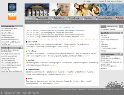 „In Bezug auf die Barrierefreiheit übernimmt die Universität Innsbruck mit ihrem neuen Internetauftritt eine Vorreiterrolle: Die gesamte Homepage wurde gemäß der Web Accessability Initiative (WAI) gestaltet“, erklärt Dipl.-Päd. Martina Kinzl, Webentwicklerin vom Büro für Öffentlichkeitsarbeit und Kulturservice. Ab 2008 werden nach heutigem Stand „barrierefreie Seiten“ für alle öffentlichen Einrichtungen verpflichtend sein.