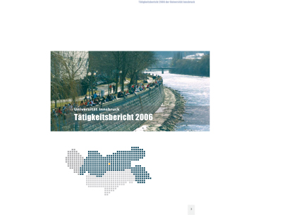Den Tätigkeitsbericht 2006 der Universität Innsbruck in der pdf-Version finden Sie hier. Der Versand der gedrucken Version wird in den nächsten 10 Tagen erfolgen.
