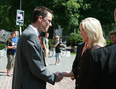 Nach ihrem Impulsstatement ergriffen die rund vierzig anwesenden StudentInnen und andere Interessierte die Möglichkeit, mit der Botschafterin zu diskutieren und scheuten sich nicht, auch kontroversielle Fragen zu stellen. So wurden u.a. der andauernde Kampf gegen den Terror, die ‚carrots-and-sticks’-Politik hinsichtlich des Irans, die gespannten Beziehungen der USA zu den Vereinten Nationen aber auch die US-Pläne zur Stationierung des Raketenabwehrsystem in Europa kritisch thematisiert. Susan McCaw ging auf alle Fragen ein und versuchte in ihren Antworten, den StudentInnen die Sichtweise der Vereinigten Staaten näher zu bringen.