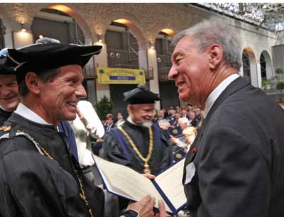 In seinen Eröffnungsworten bezeichnete Rektor Karlheinz Töchterle das Goldene Doktorjubiläum als eine schöne aber auch zwingende Idee, da sie die Verbundenheit der AbsolventInnen ausdrücke. Alumni, so Töchterle, seien wesentlich für die Wirkung und Festigkeit einer Universität. An die JubilarInnen richtete er den Appell, die Erfahrungen und die akademische Freiheit, die sie während ihres Studiums erlebten, an die Jugend weiterzugeben. „Es ist nicht nur wichtig, das Hier und Jetzt zu sehen, sondern auch zu erfahren, was Universität sein kann. Dabei sollten wir uns auch immer den Wesensgrund einer Universität vor Augen halten: Das Streben nach Wissen und Erkenntnis“, so Töchterle.