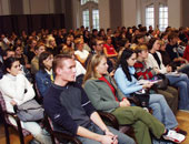 Im Anschluss an die Begrüßung informierten die Mitarbeiterinnen des Büros für Internationale Beziehungen über die gesetzlichen Rahmenbedingungen, Anmeldeerfordernisse und die wichtigsten erste Schritte beim Einstieg in das Studium an der Universität Innsbruck. Zum Abschluss lud Rektor Prof. Gantner "zu einigen Drinks" ins Foyer vor die Aula. (cf)
