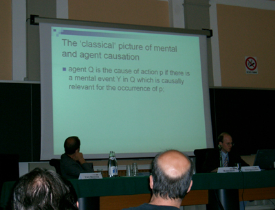 Das Problem des freien Willens wurde ebenso diskutiert, wie Probleme der „rational choice theory“ oder die Bedeutung naturwissenschaftlicher Erkenntnisse für oder wider eine deterministische Weltsicht. Die Tagung war hochkarätig besetzt; es nahmen Forscher aus den USA, Großbritannien, Österreich, Italien, Frankreich und Deutschland an der Tagung teil. Einige von ihnen wie A. Mele (Florida/USA), T. O’Connor (Indiana/USA) oder J. Lowe (Durham/GBR) zählen zu den tonangebenden Forschern in der internationalen philosophischen Diskussion zur Handlungstheorie und Willensdebatte.