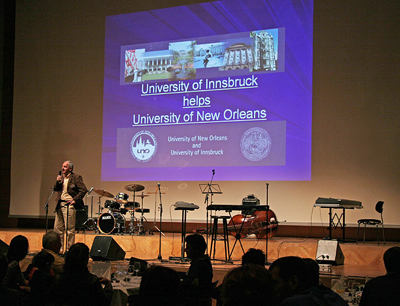 „Durch die spontane und unkomplizierte Bereitschaft der Musiker, Künstler und zahlreicher Tiroler Unternehmen sind wir in der Lage, den gesamten Erlös aus dem Ticketverkauf, der Versteigerung von Kunstwerken, der Lotterie von Sachpreisen und einigen Privatspenden den Menschen in New Orleans zur Verfügung zu stellen“, zeigt sich Prof. Franz Mathis, Beauftragter der Universität Innsbruck für die Partnerschaft mit der UNO und Sprecher der „New Orleans Support Initiative“ sehr zufrieden. „Wir möchten damit Studierenden der UNO helfen, die durch den Hurrikan nicht mehr weiter an ihrer Heimatuniversität studieren können, indem wir sie nach Innsbruck einladen, wo sie ihr Studium fortsetzen können. Weiters soll auch den Angehörigen der UNO und des Center Austria sowie den zahlreichen Gastfamilien, die seit 24 Jahren Studierende aus Innsbruck aufnehmen, geholfen werden. Viele haben durch den Sturm ihre Häuser bzw. Arbeitsplätze verloren.“