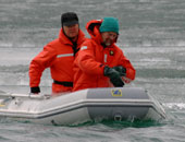 Das geplante Arbeitspensum haben die Wissenschaftler zwar erreicht, doch war der jetzige Aufenthalt wahrlich das genaue Gegenteil von dem im Mai/Juni diesen Jahres. „Das Wetter war diesmal wirklich ausnehmend schlecht. Die starke Eisbedeckung und Wind haben das Fischen sehr behindert. Darüber hinaus mussten durch den starken Nebel die Hubschrauberflüge zu den umliegenden Seen immer wieder verschoben werden. An einem Tag mussten wir nach einem 100km-Hubschrauberflug sogar wieder umkehren, weil die Küste von Devon Island so vernebelt war, dass ein Weiterflug ins Untersuchungsgebiet zu gefährlich gewesen wäre“, beschreibt Köck die Wettersituation während ihrer zehntägigen Forschungsarbeiten, die das Fangen von Fischen zu einer mühsamen Geduldsprobe für die beiden Forscher machte. „Bis zu 90% der Seeflächen waren von dicken Eisschichten bedeckt, wir haben um diese Zeit hier noch nie soviel Eis gesehen“, so Köck überrascht.