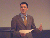 Dr. Arne Rogg-Pietz von der Universität Kiel beschäftigte sich angesichts dessen theoriegeleitet mit Weltpolitik unter den Bedingungen der Gleichzeitigkeit – einer Gleichzeitigkeit, die vor allem auf die neuen internetbasierten Kommunikationsmöglichkeiten zurückzuführen ist. Damit könnte eine neue Grundlage für verbesserte internationale Kooperation geschaffen werden, da sich Staaten rascher informativ austauschen können und sozusagen in Echtzeit gemeinsame Situationsbewertungen entwickeln können. Im Zuge dessen erhöhen sich allerdings auch die Ansprüche an die Politik enorm, und die internationalen politischen Eliten können oft nur den Ereignissen hinterherhandeln – so dass dann doch die desintegrativen Momente in der Weltpolitik wieder überwiegen könnten. Somit wird deutlich, dass auch die Möglichkeiten der internetionalen Politik kluges, vorausschauendes staatsmännisches Handeln keineswegs ersetzen.