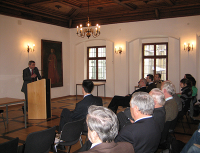 Nach seinem Vortrag stellte Bridadier Wosolsobe sich der Diskussion mit dem Publikum und beantwortete detailliert alle auftauchenden Sachfragen. Bei einem Empfang in der Galerie Claudiana klang die gelungene Semesterauftaktveranstaltung der Stiftungsprofessur für Europäische Sicherheitspolitik gemütlich aus.
